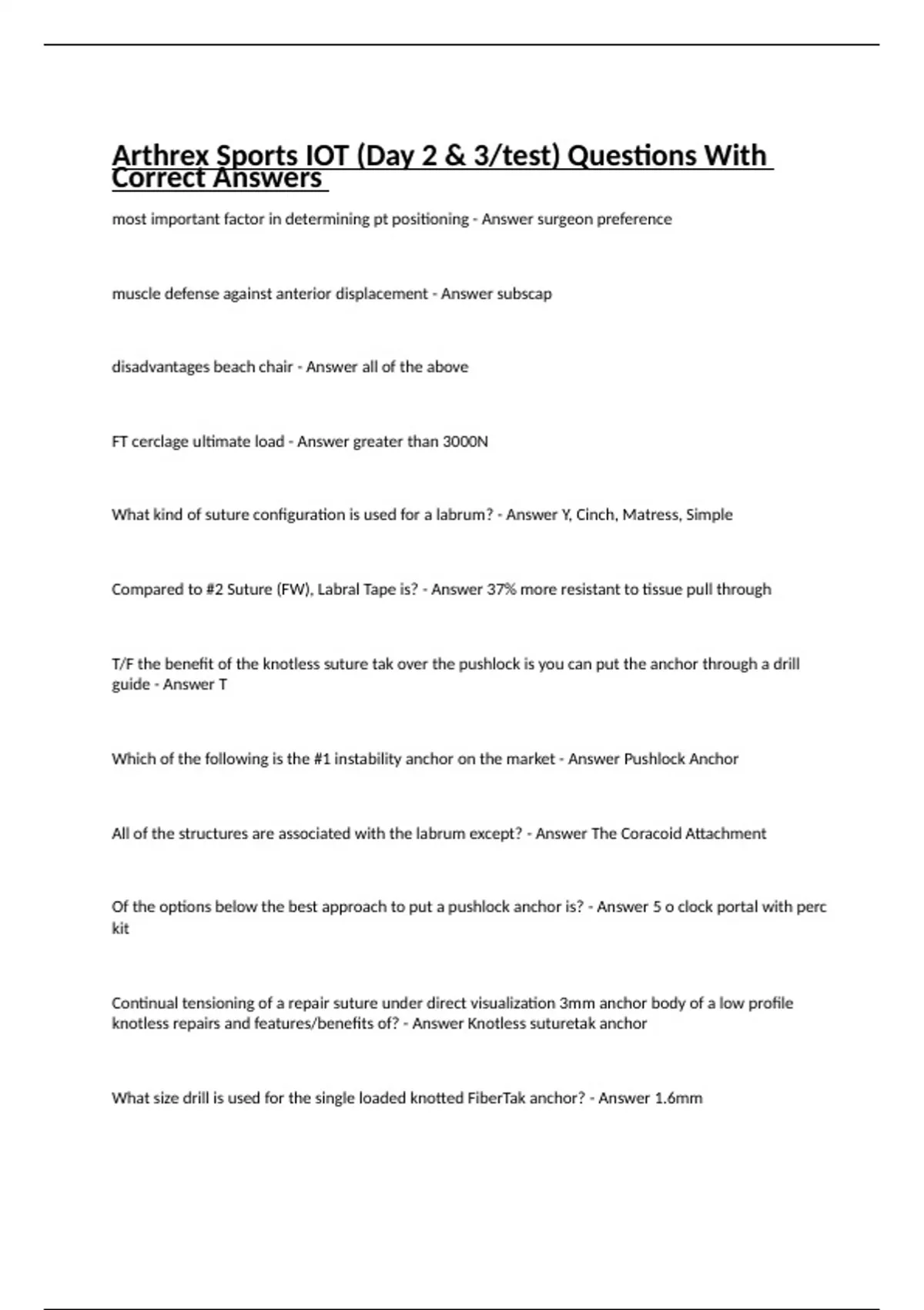 Arthrex Sports IOT (Day 2 & 3/test) Questions With Correct Answers