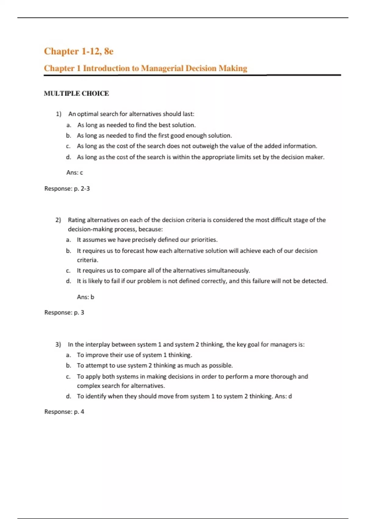 Test Bank for Judgment in Managerial Decision Making, 8th Edition, Max H. Bazerman, Don A. Moore