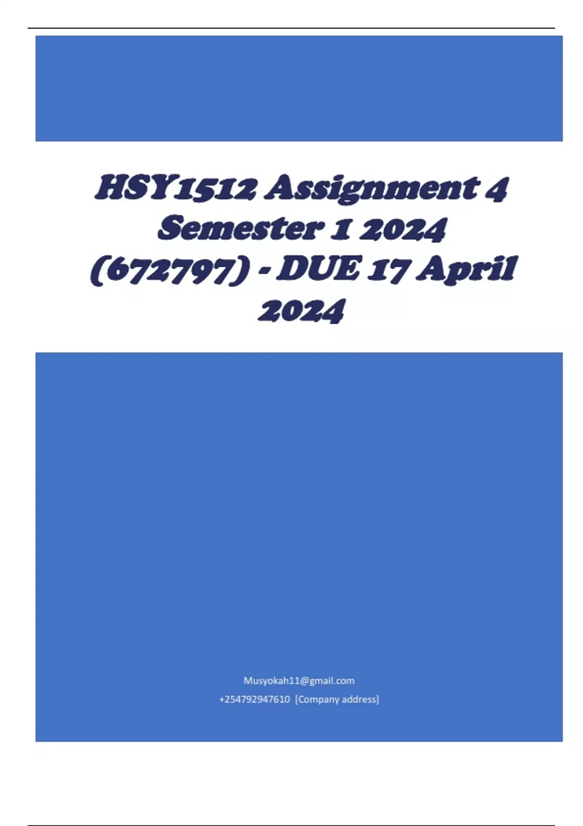 , HSY1512 Assignment 4 Semester 1 2024 (672797) - DUE 17