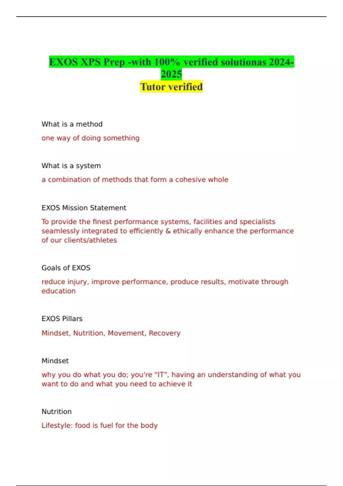 EXOS XPS Prep -with 100% verified solutions