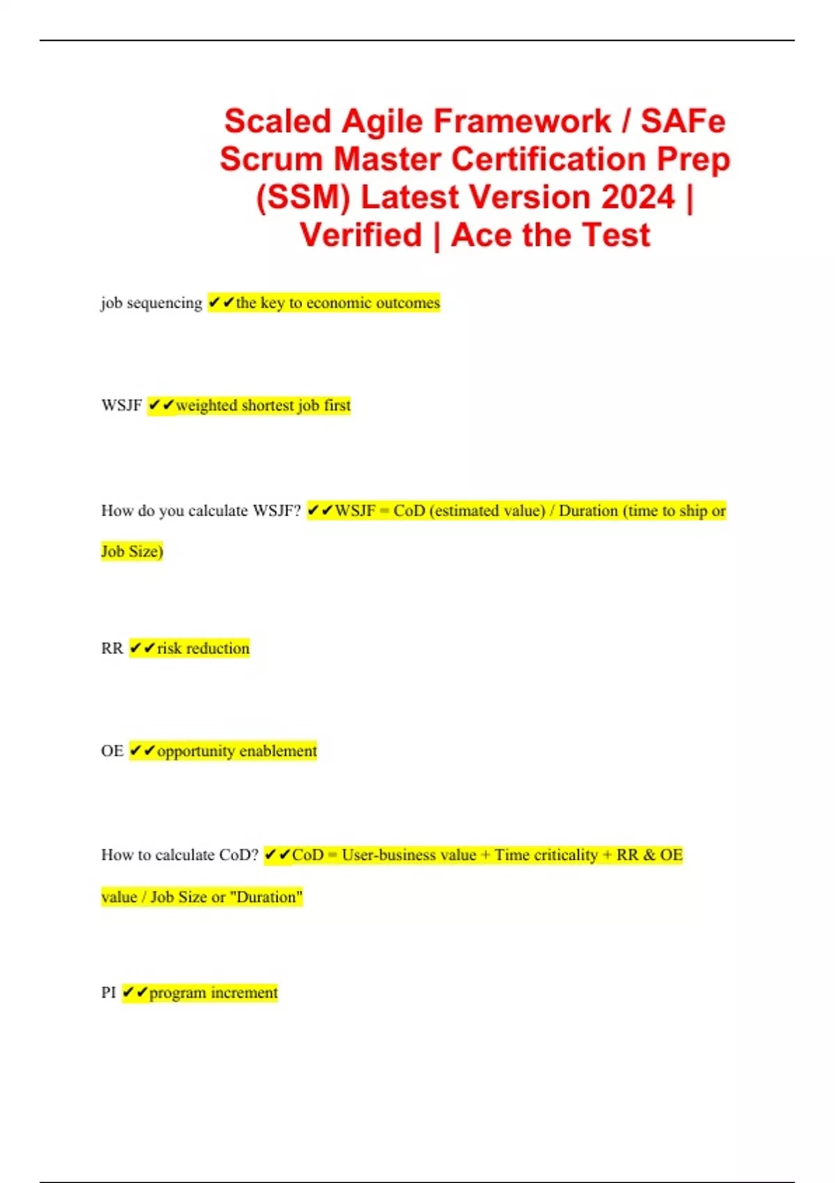 Scaled Agile Framework / SAFe Scrum Master Certification Prep (SSM) Latest Version 2024 | Verified | Ace the Test