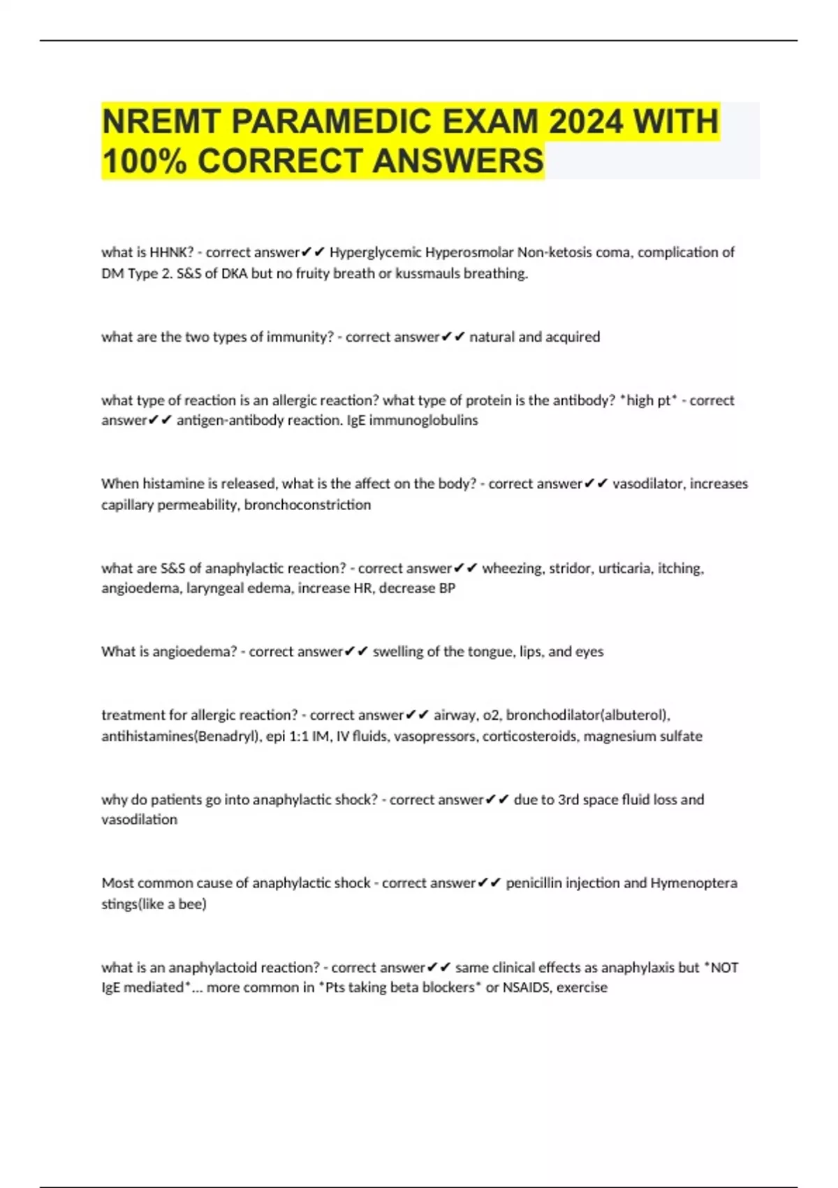 nremt paramedic exam 2024 with 100 correct answer