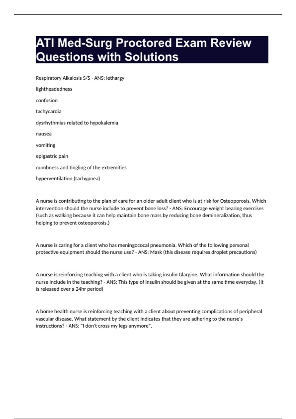 ATI Med-Surg Proctored Exam Review Questions with Solutions