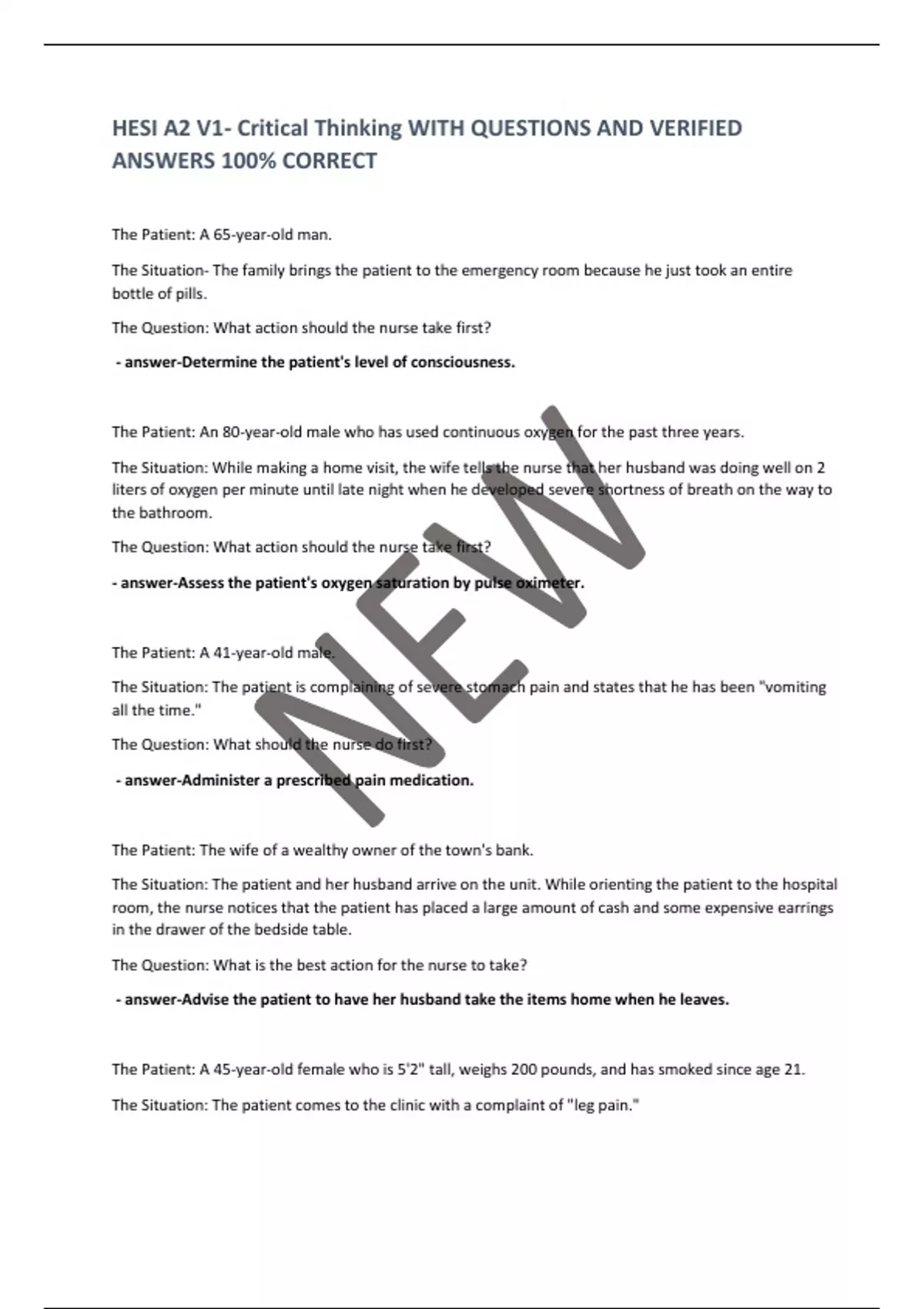 HESI A2 V1- Critical Thinking WITH QUESTIONS AND VERIFIED ANSWERS 100% CORRECT