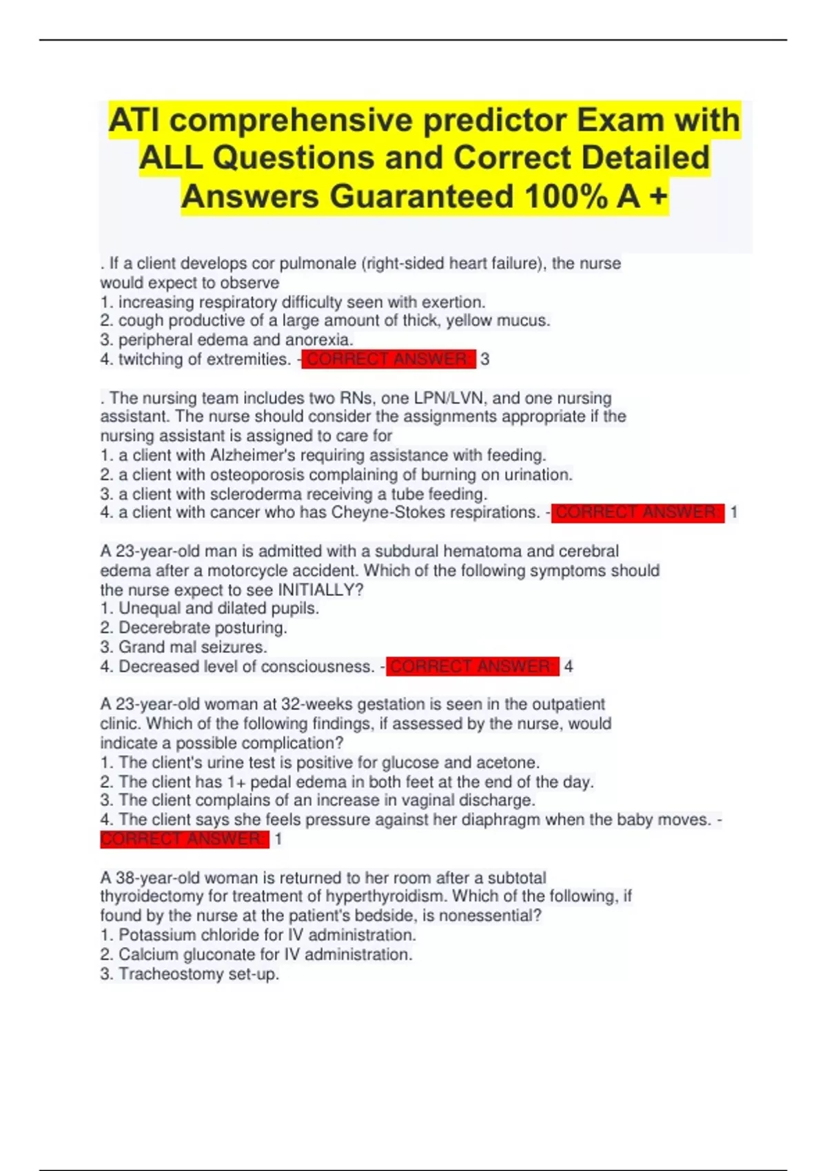ATI comprehensive predictor Exam with ALL Questions and Correct Detailed Answers Guaranteed 100% A +
