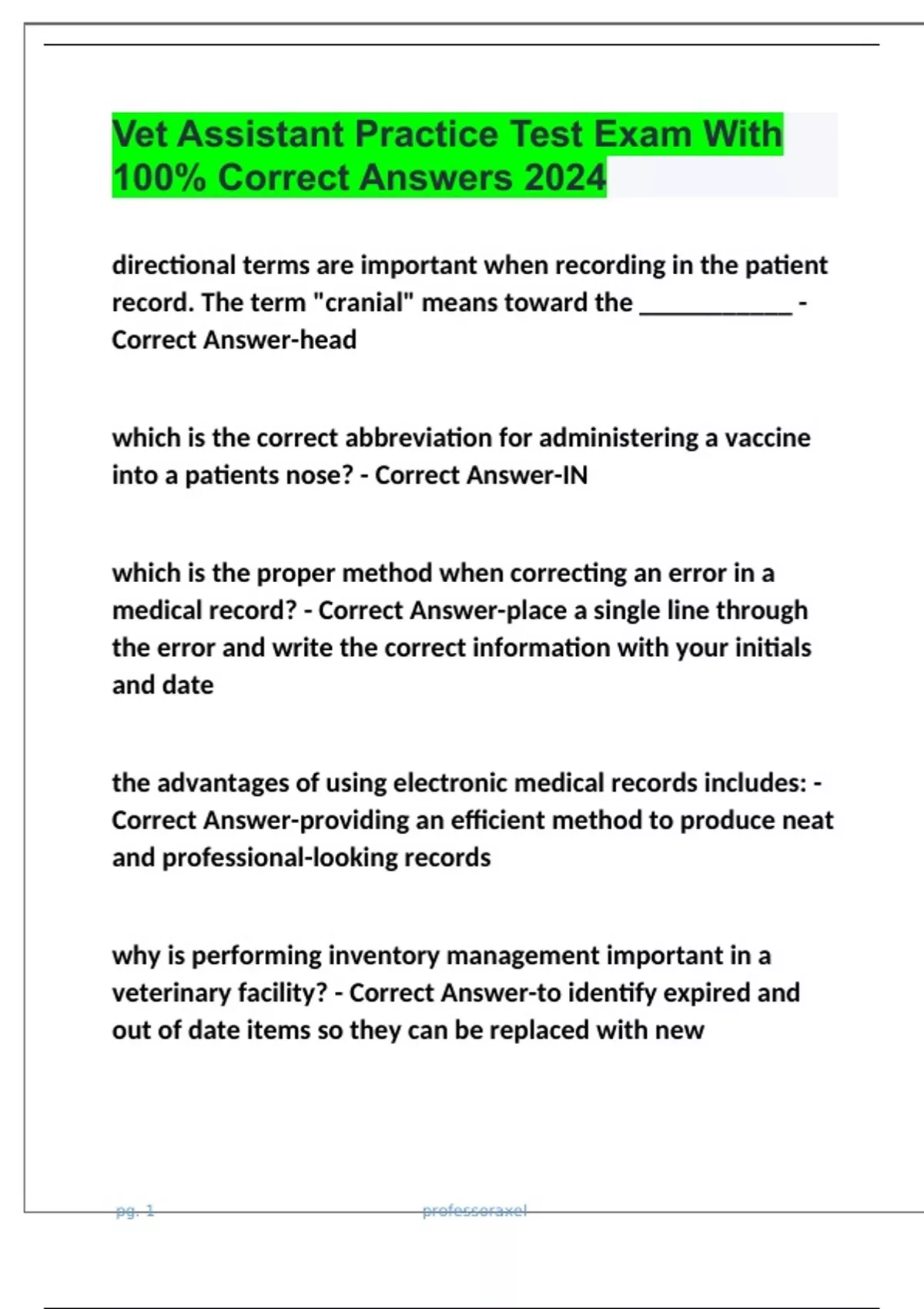 Vet Assistant Practice Test Exam With 100% Correct Answers 2024