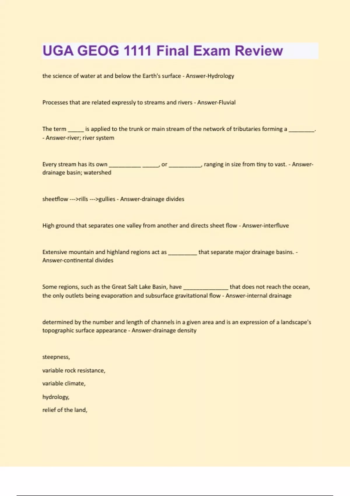 UGA GEOG 1111 Final Exam ReviewQuizzes And Answers Latest 2024