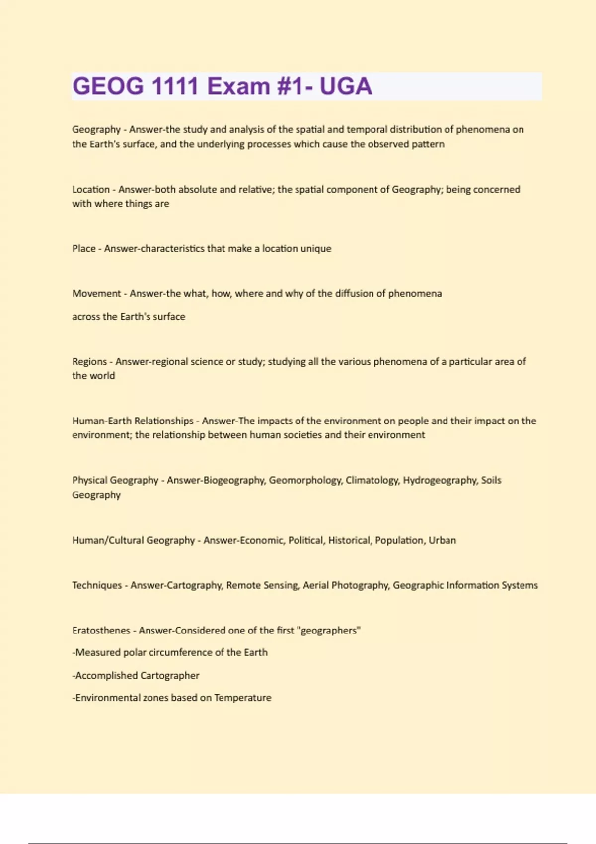 GEOG 1111 Exam #1- UGA (Actual) Questions With Correct Solutions.