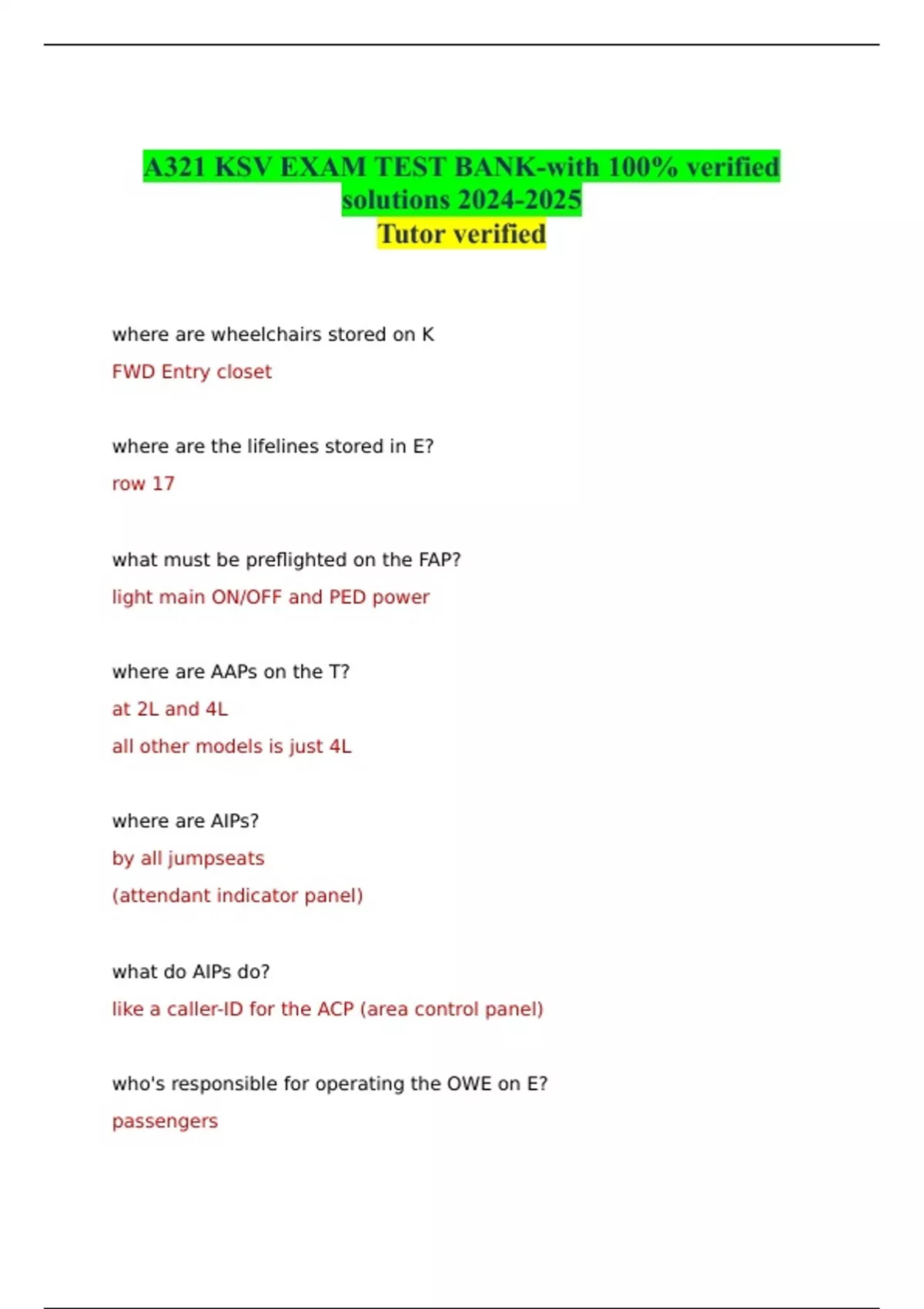 A321 KSV EXAM TEST BANK-with 100% verified solutions