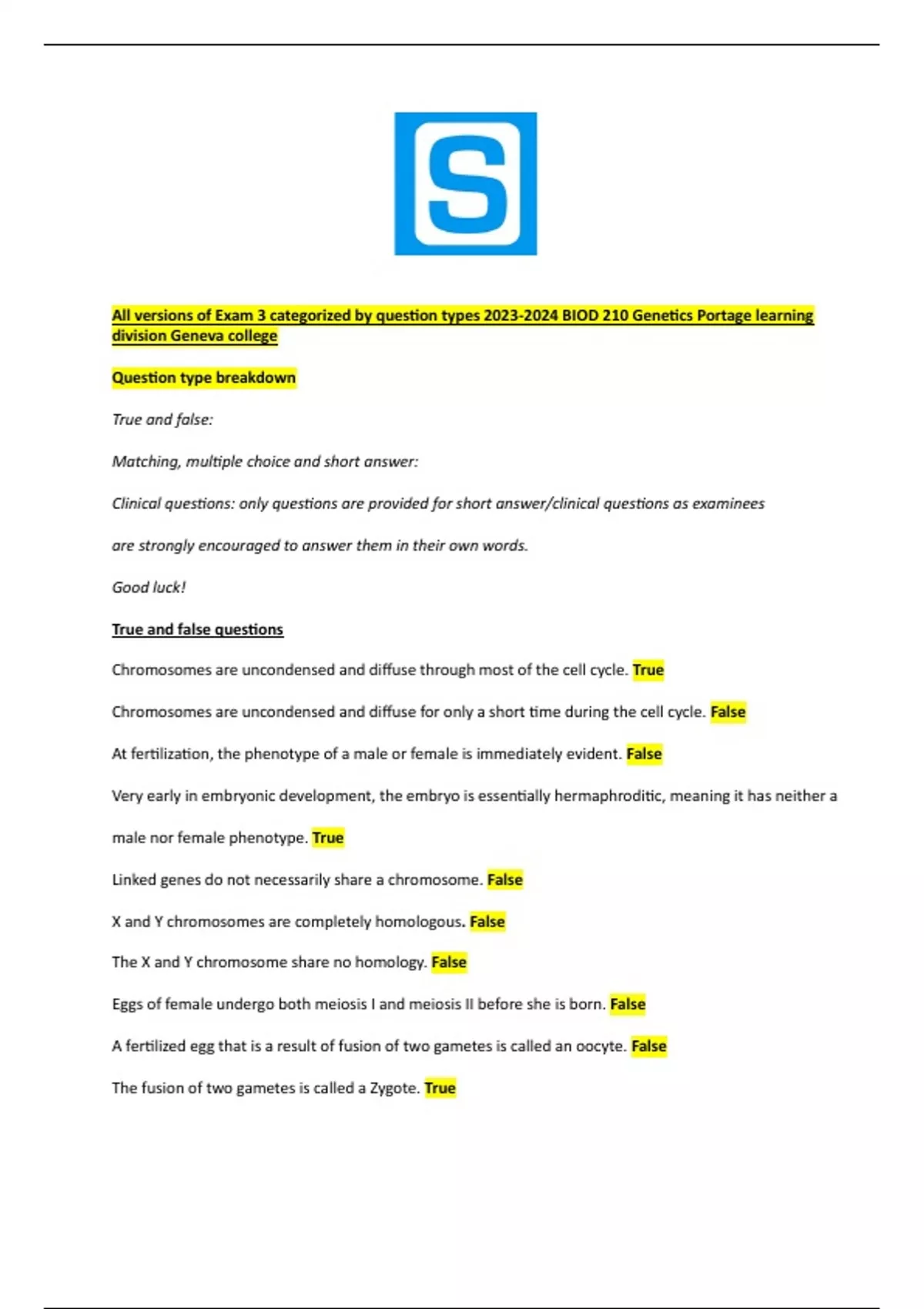 Clinical questions: only questions are provided for short answer/clinical questions as examinees
