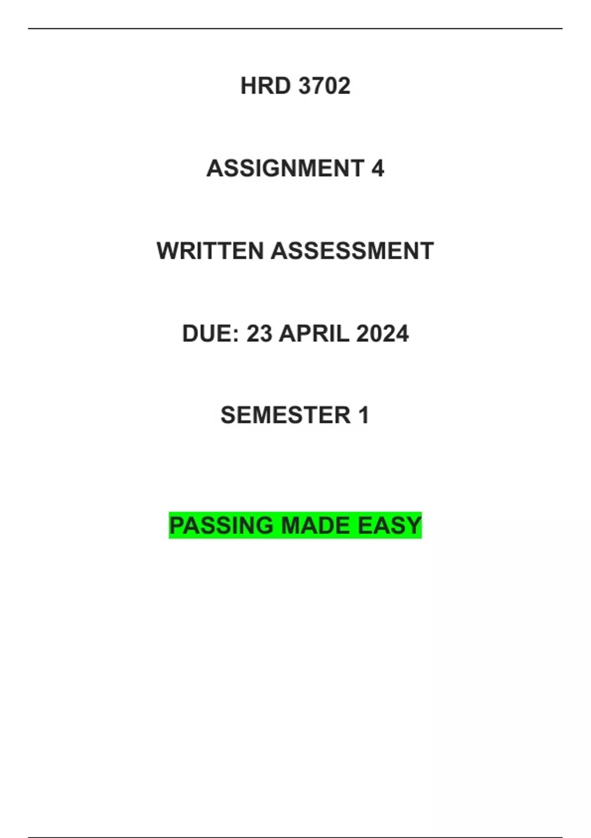 This document contains answers for HRD3702 Assignment 4 2024 (written assessment). PASS TODAY!