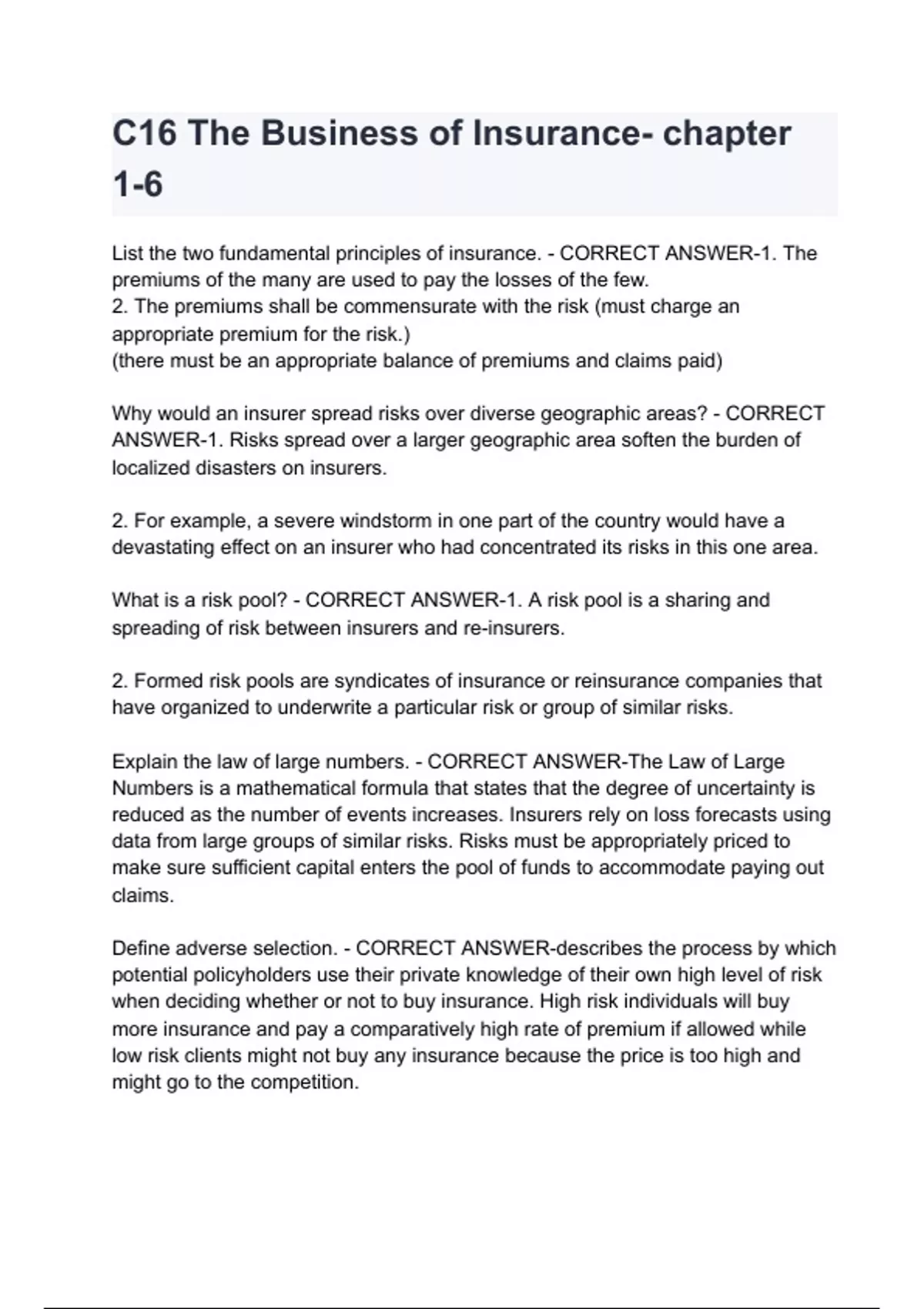 C16 The Business of Insurance- chapter 1-6 With complete solution