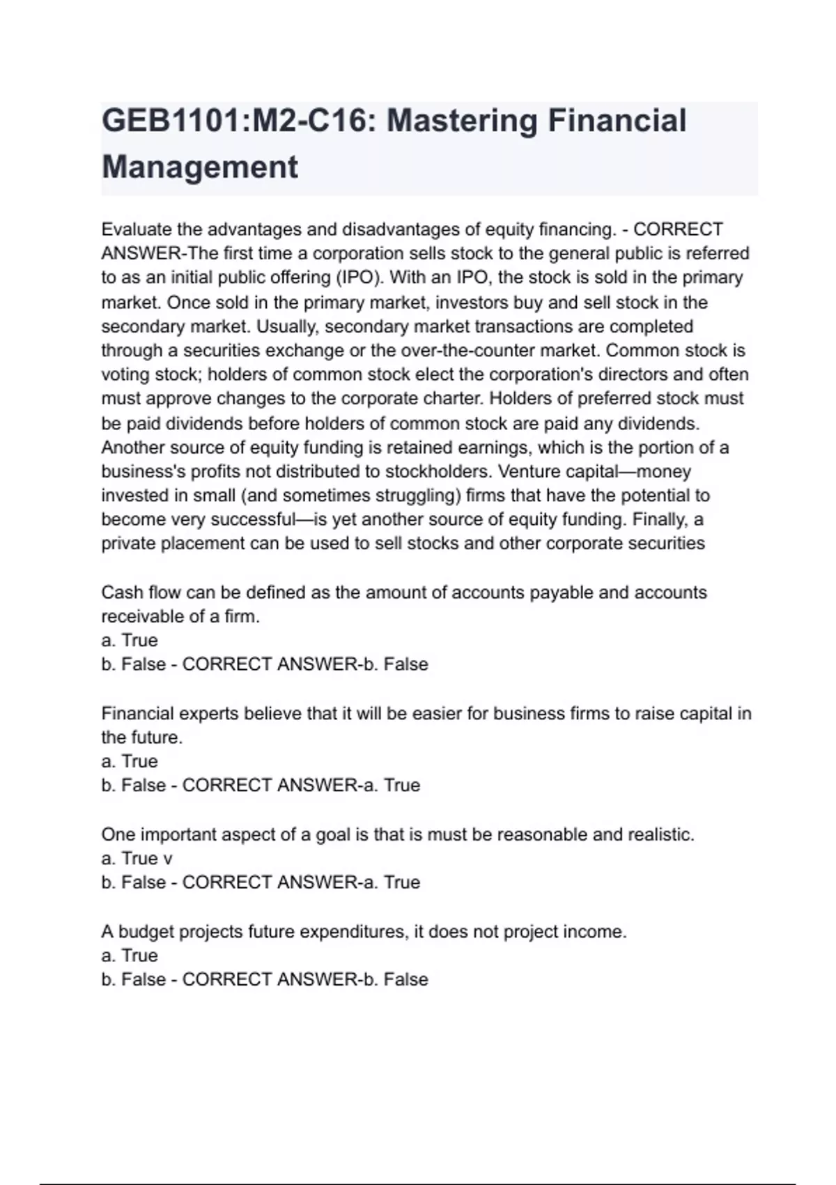 GEB1101_M2-C16_ Mastering Financial Management With complete solution