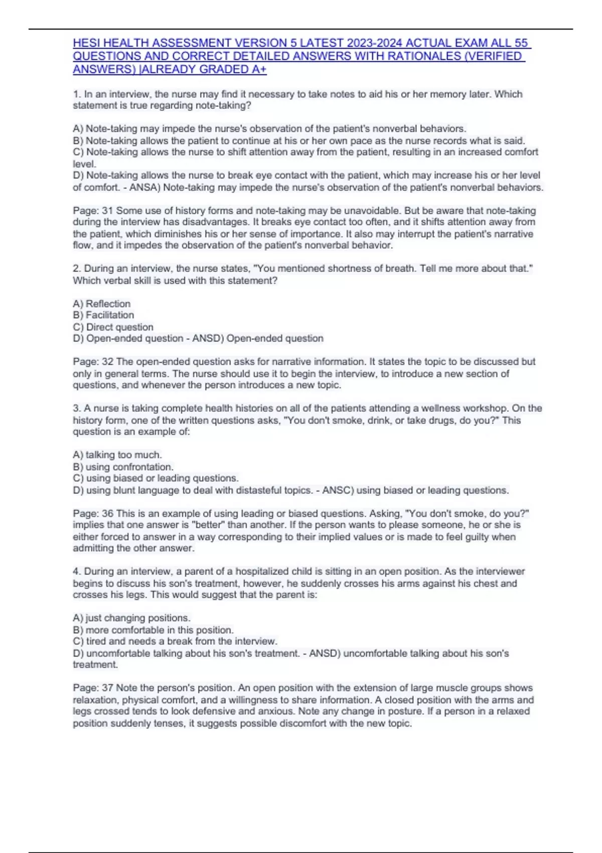 HESI HEALTH ASSESSMENT VERSION 5 LATEST ACTUAL EXAM ALL 55 QUESTIONS AND CORRECT DETAILED ANSWERS WITH RATIONALES (VERIFIED ANSWERS) |ALREADY GRADED A+