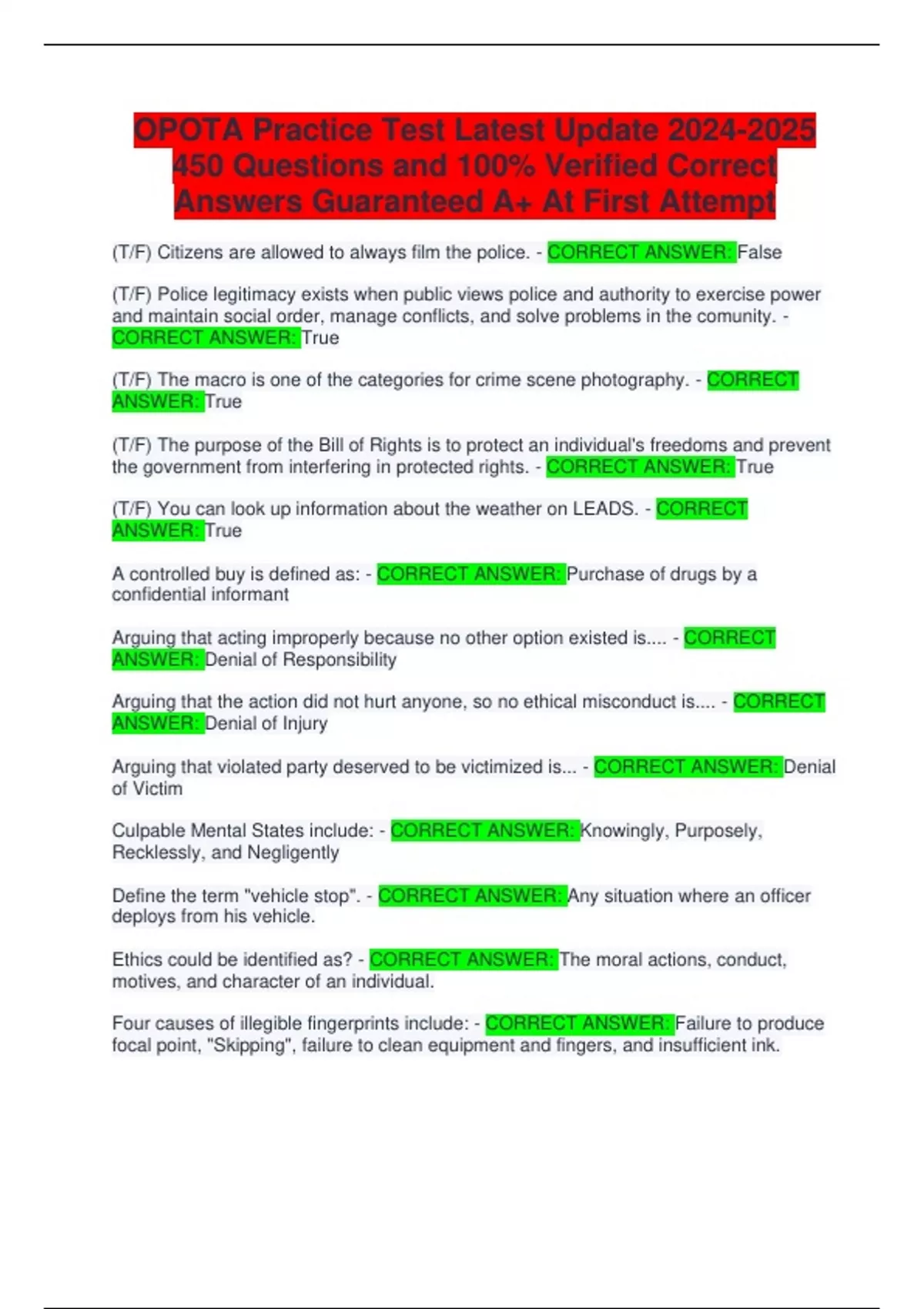 OPOTA Practice Test Latest Update Questions and 100% Verified Correct Answers Guaranteed A+ At First Attempt