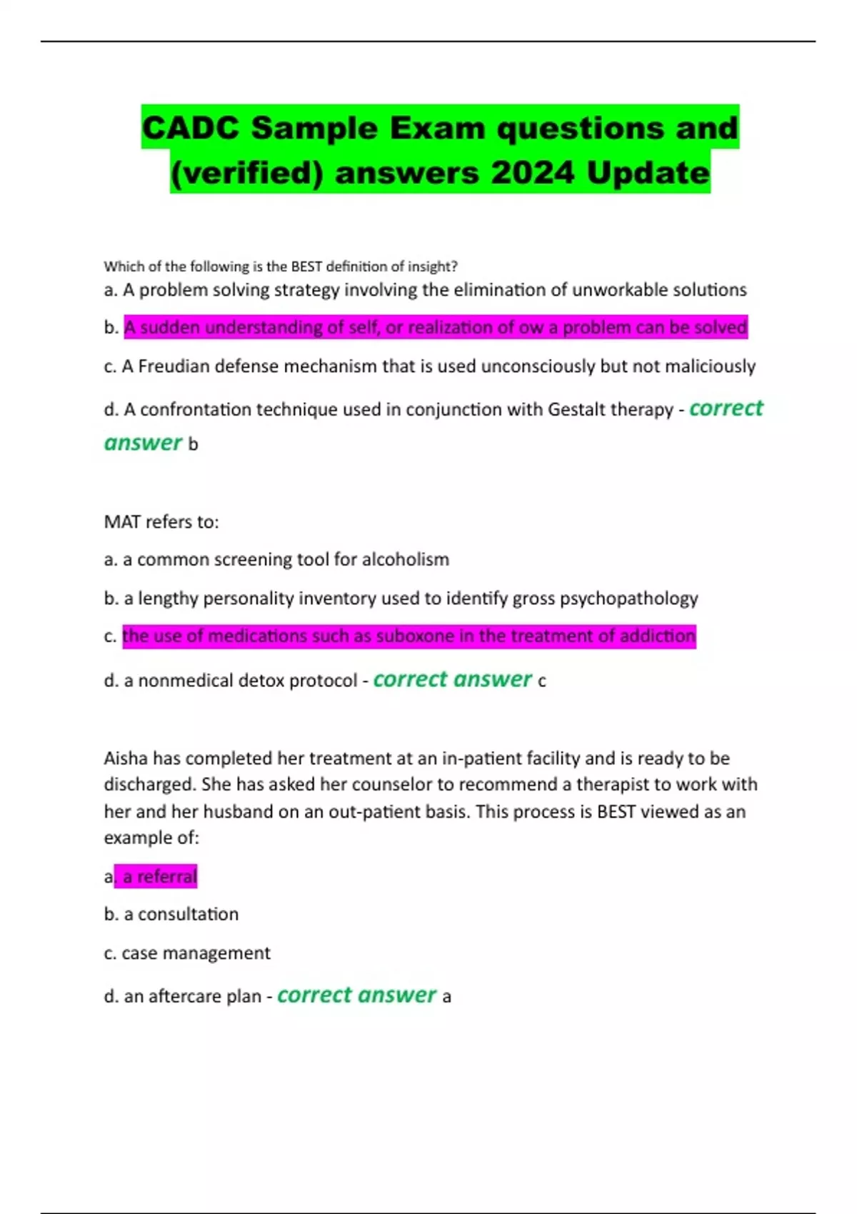 CADC Sample Exam questions and (verified) answers 2024 Update