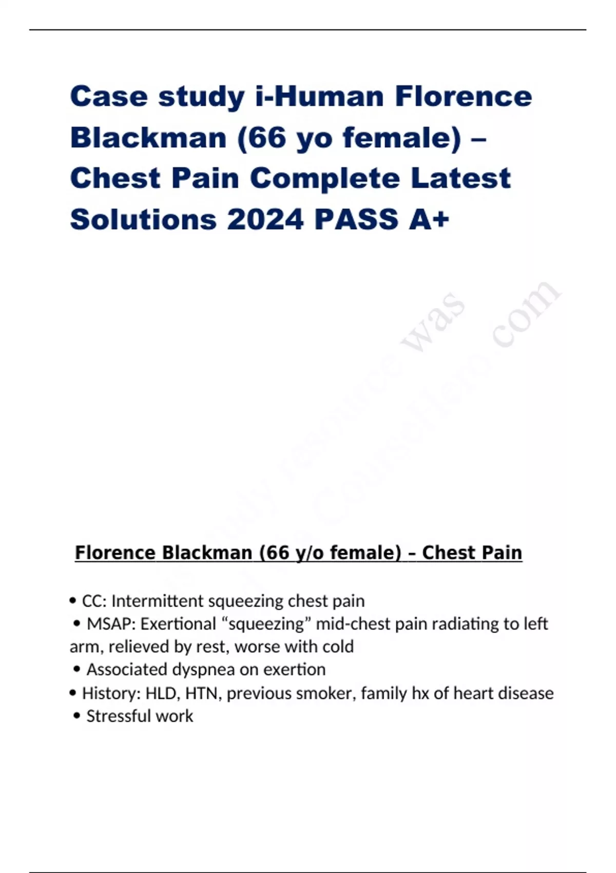 Case study i-Human Florence Blackman (66 yo female) – Chest Pain Complete Latest Solutions 2024 PASS A+