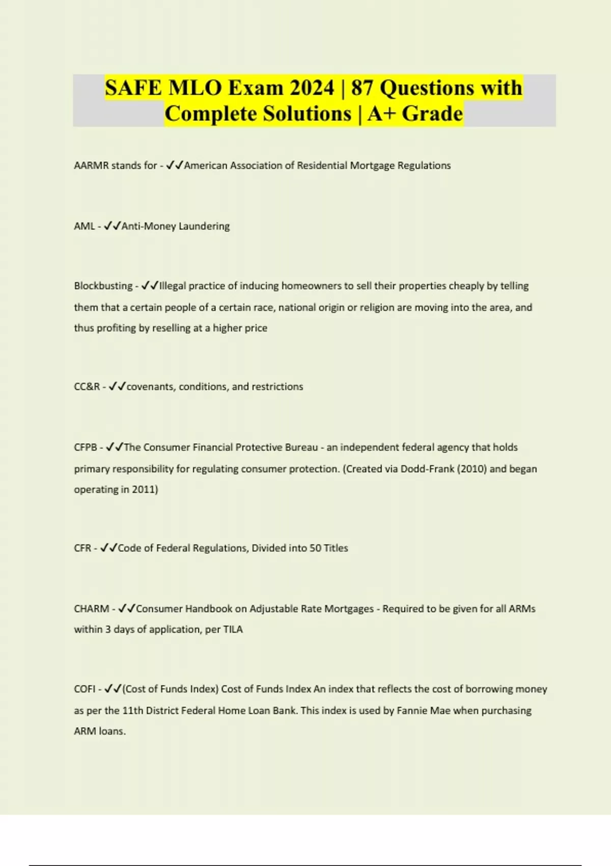 SAFE MLO Exam 2024 | 87 Questions with Complete Solutions | A+ Grade