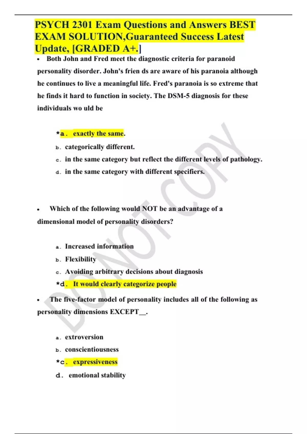 PSYCH 2301 Exam Questions and Answers BEST EXAM SOLUTION,Guaranteed Success Latest Update, GRADED A+.