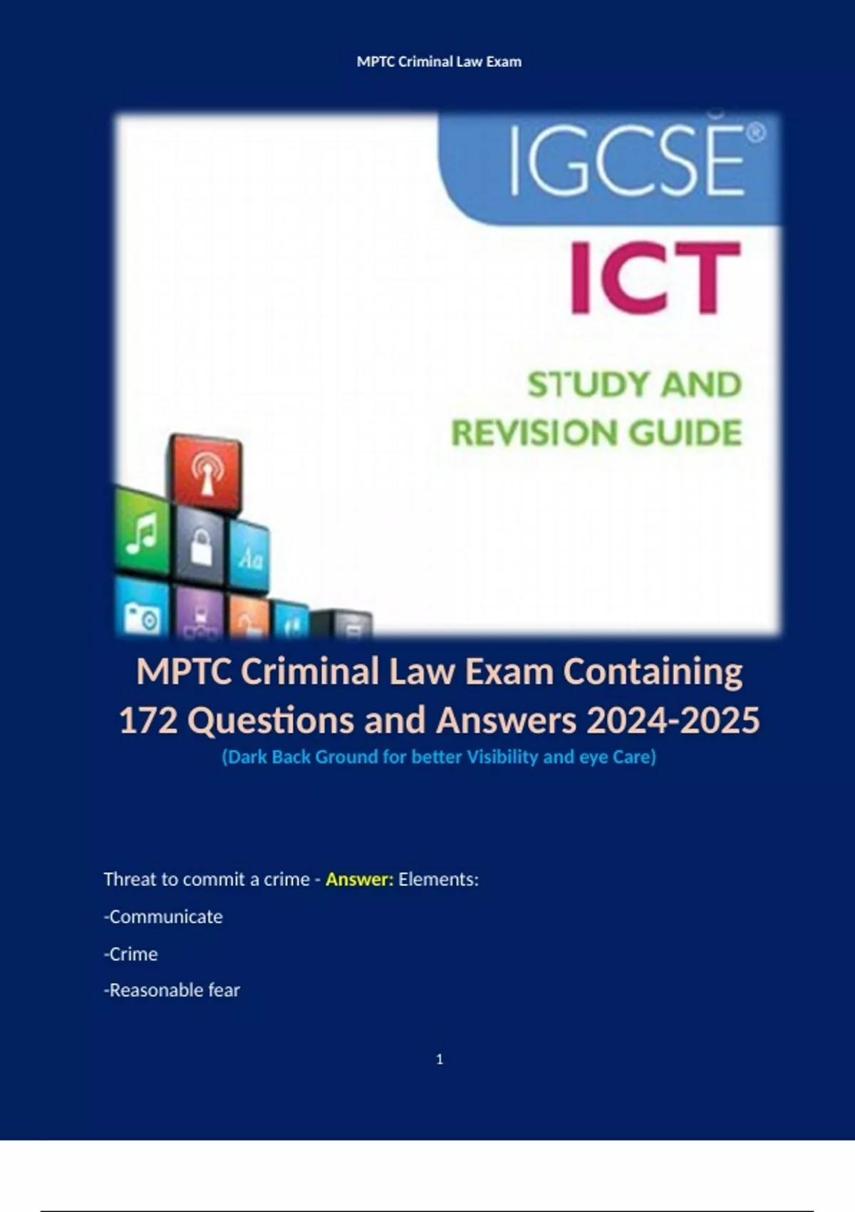 - MPTC Criminal Law Exa Containing 172 Quetions an