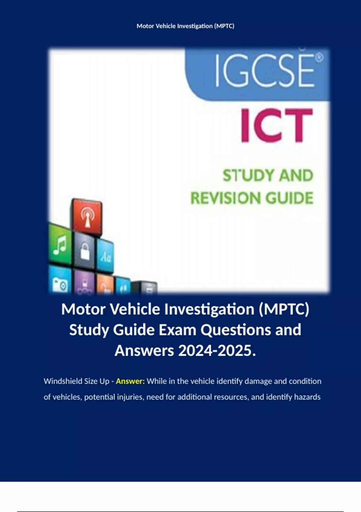 Motor Vehicle Investigation (MPTC) Study Guide Exam Questions and Answers .