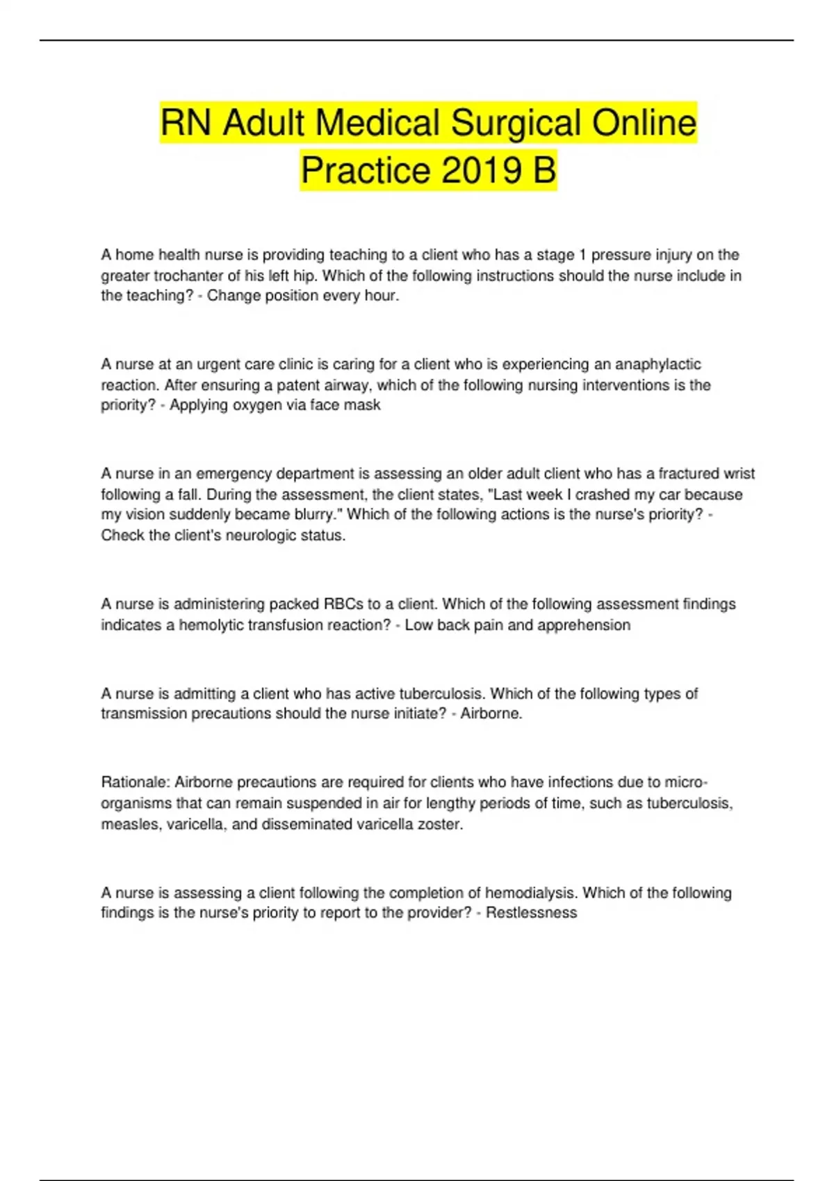 RN Adult Medical Surgical Online Practice 2019 B