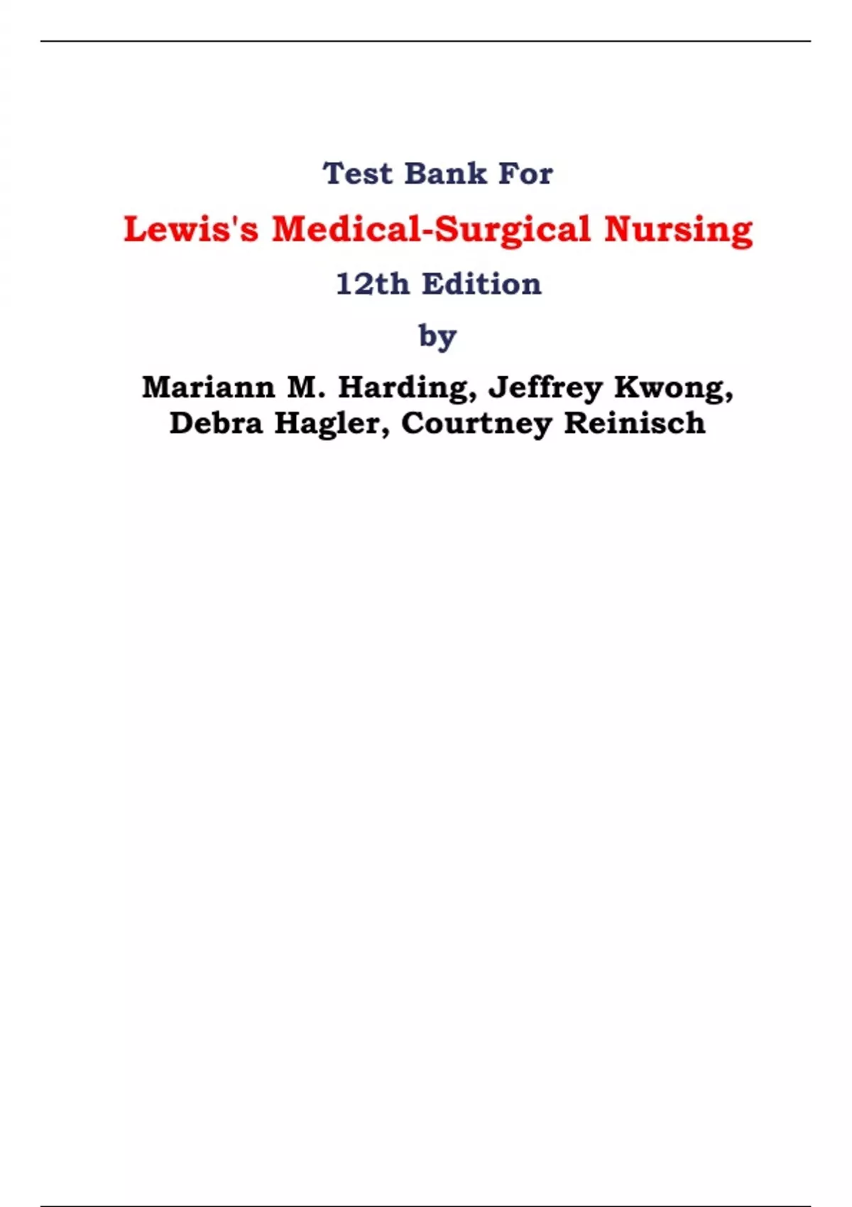 Test Bank For Lewis's Medical-Surgical Nursing 12th Edition by Mariann M. Harding, Jeffrey Kwong, Debra Hagler, Courtney Reinisch