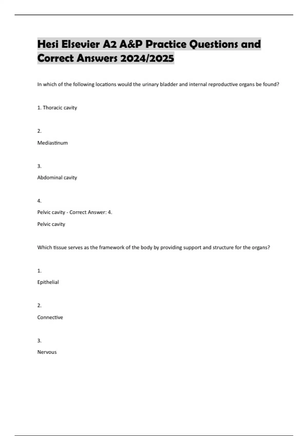 Hesi Elsevier A2 A&P Practice Questions and Correct Answers 2024/2025