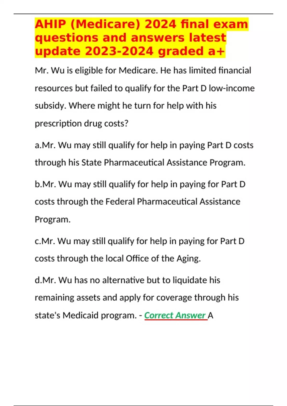 AHIP (Medicare) 2024 final exam questions and answers latest update graded a+