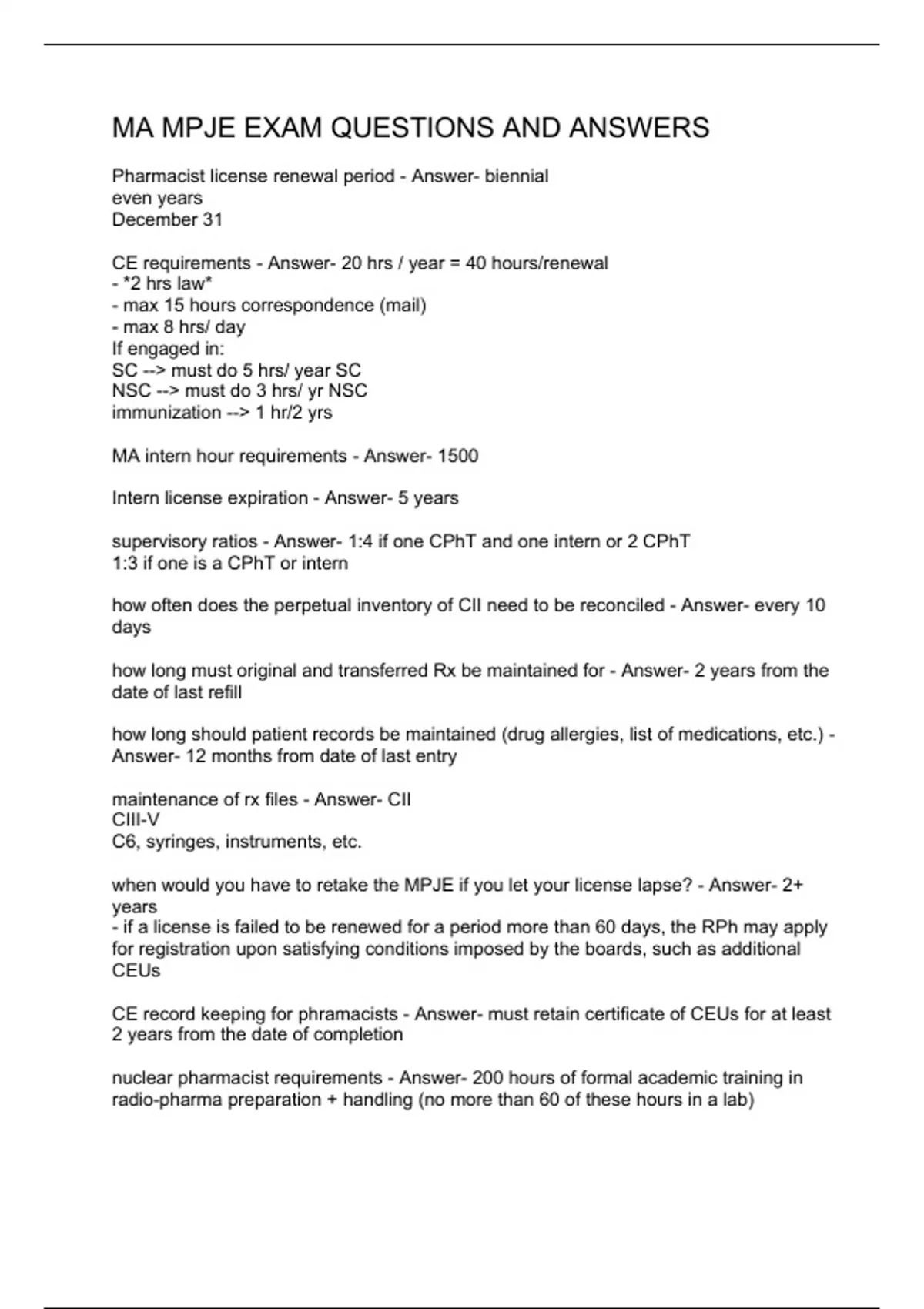 MA MPJE EXAM QUESTIONS AND ANSWERS