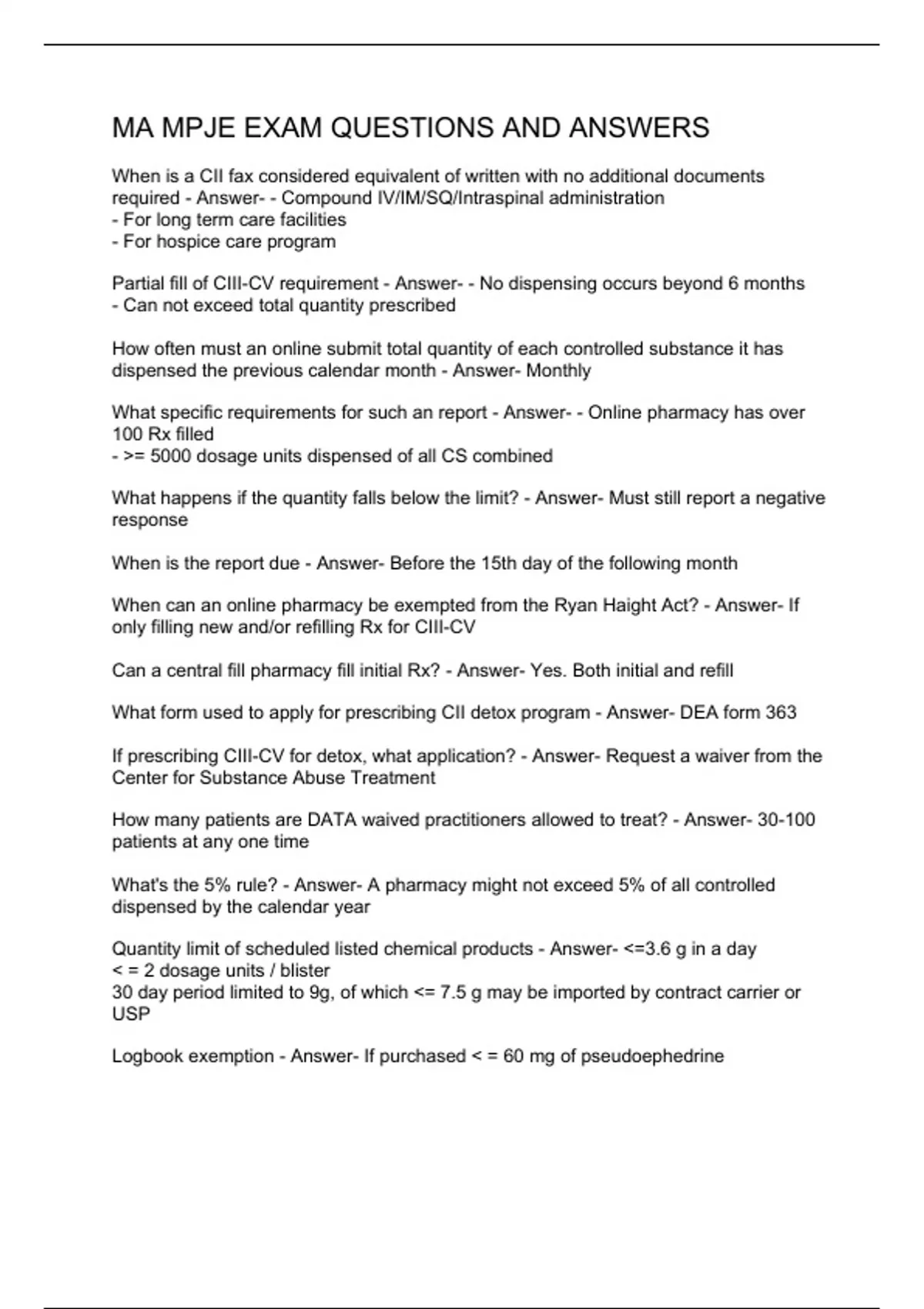 MA MPJE EXAM QUESTIONS AND ANSWERS