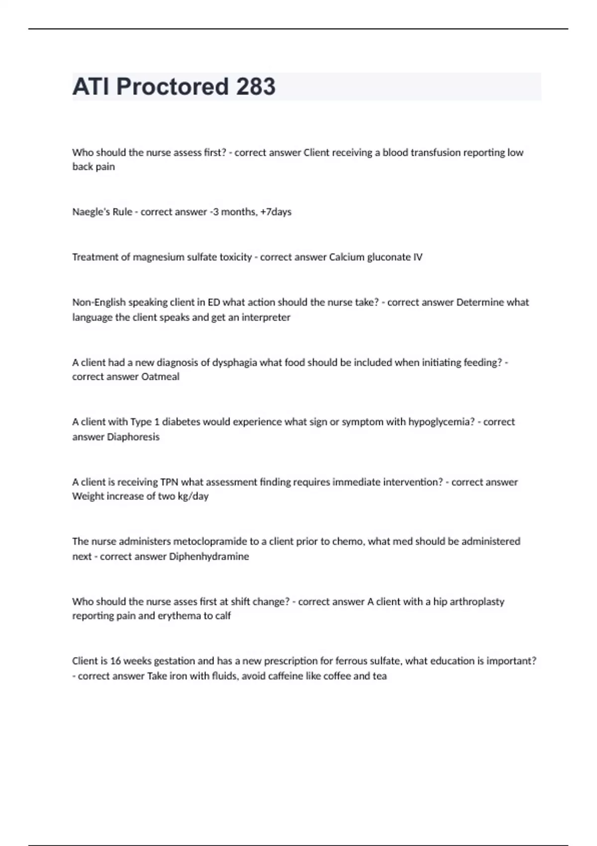 Who should the nurse assess first? - correct answer Client receiving a blood transfusion reporting low