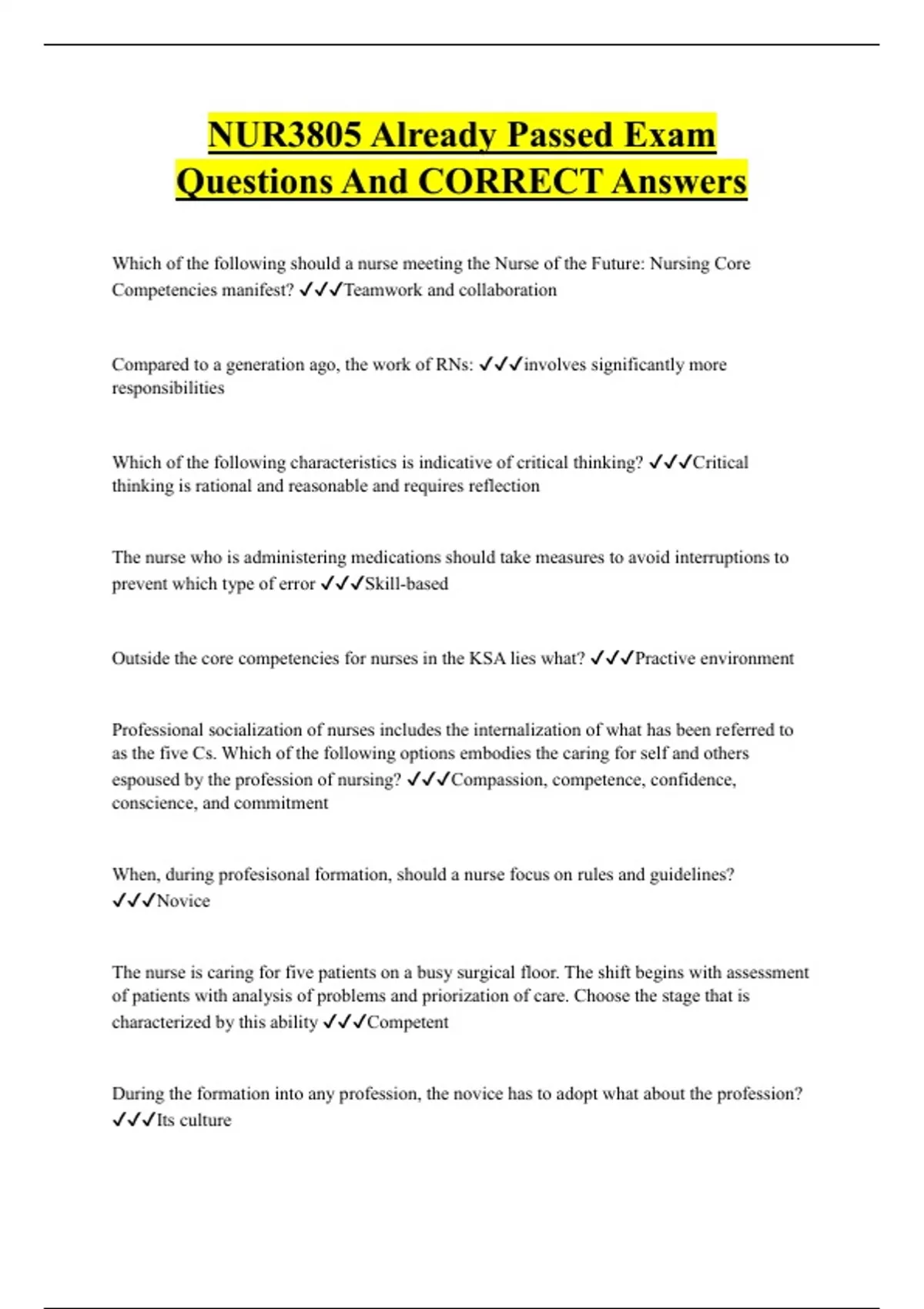 NUR3805 Already Passed Exam Questions And CORRECT Answers
