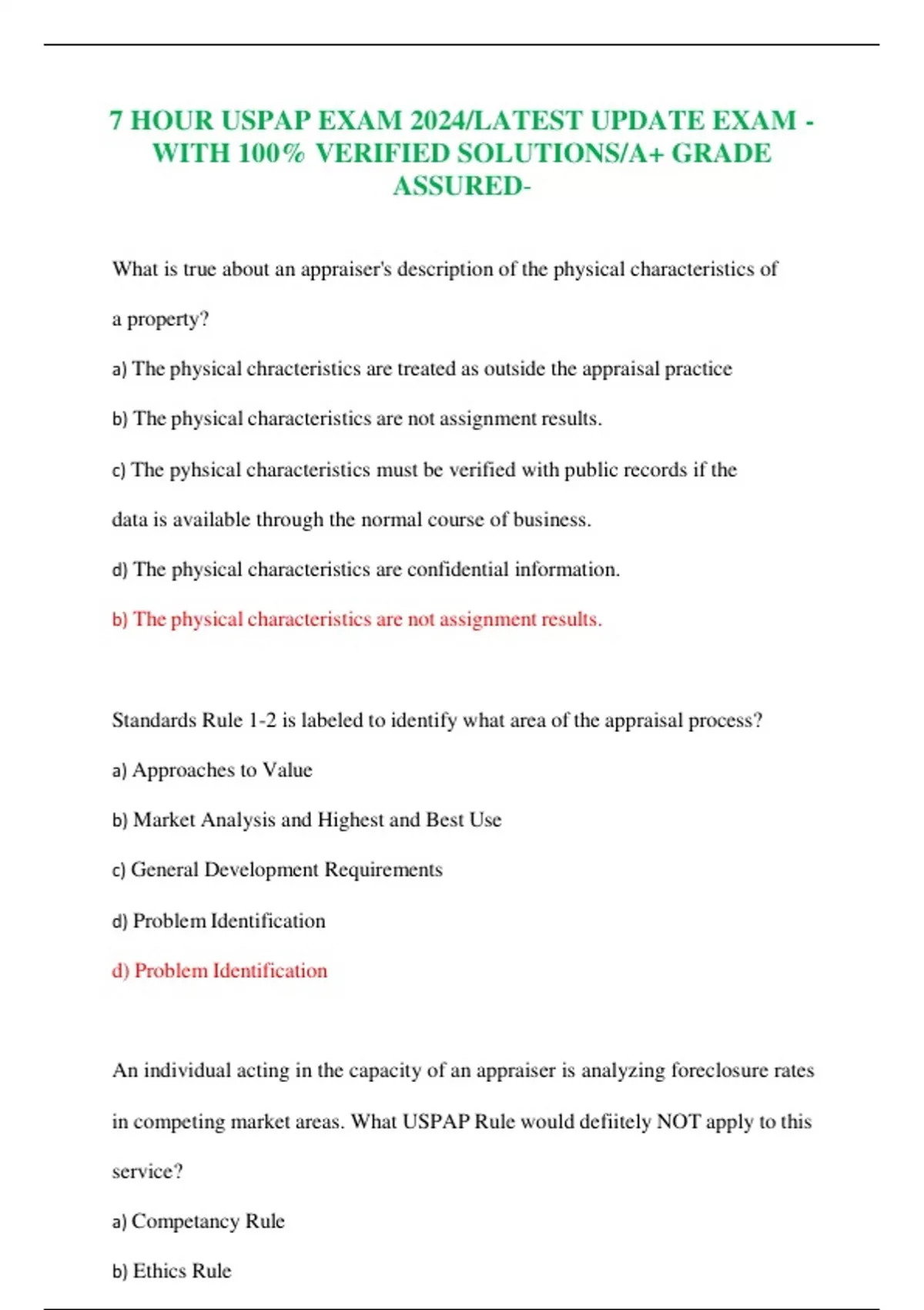7 HOUR USPAP EXAM 2024/LATEST UPDATE EXAM -WITH 100% VERIFIED SOLUTIONS/A+ GRADE ASSURED-