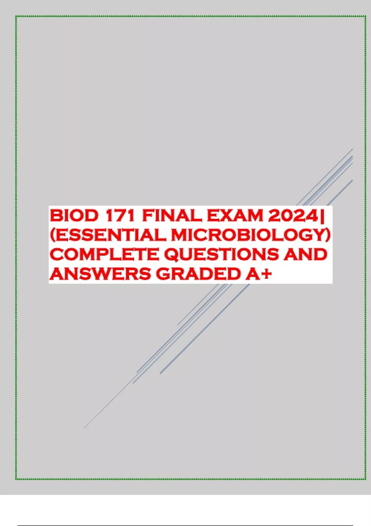BIOD 171 FINAL EXAM 2024| (ESSENTIAL MICROBIOLOGY) COMPLETE QUESTIONS AND ANSWERS GRADED A+