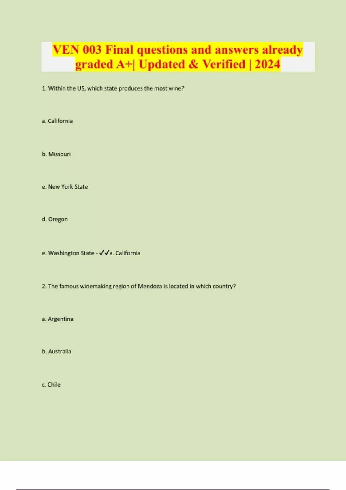 VEN 003 Final questions and answers already graded A+| Updated & Verified | 2024