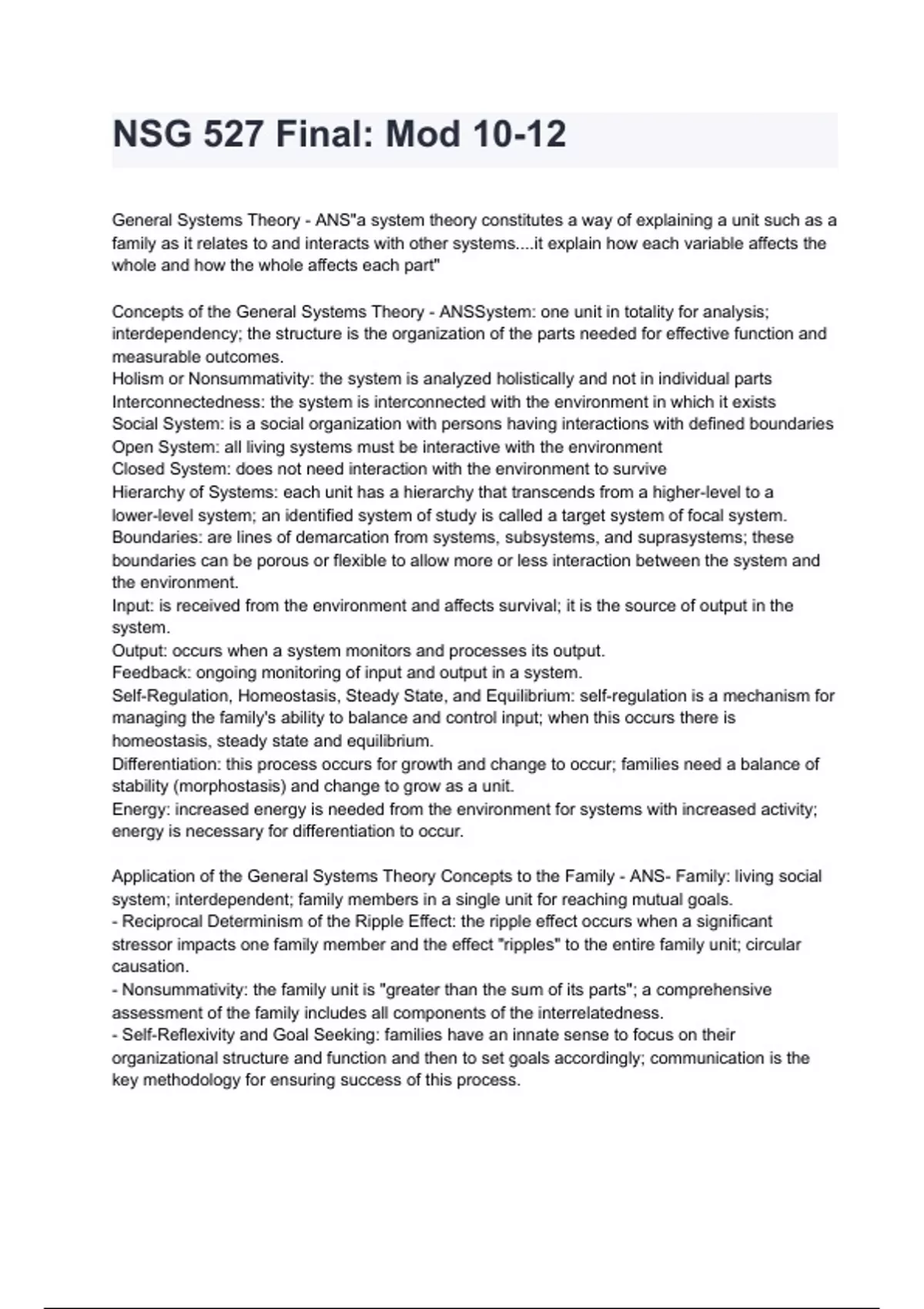 NSG 527 Final: Mod 10-12 graded A+ by experts 2024/2025