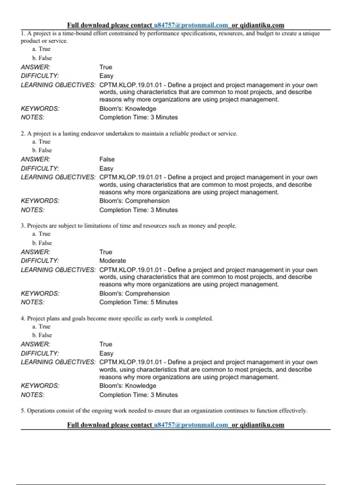 Contemporary Project Management 4th Edition test bank Full download please contact u84757(at)protonmail(dot)com or qidiantiku(dot)com