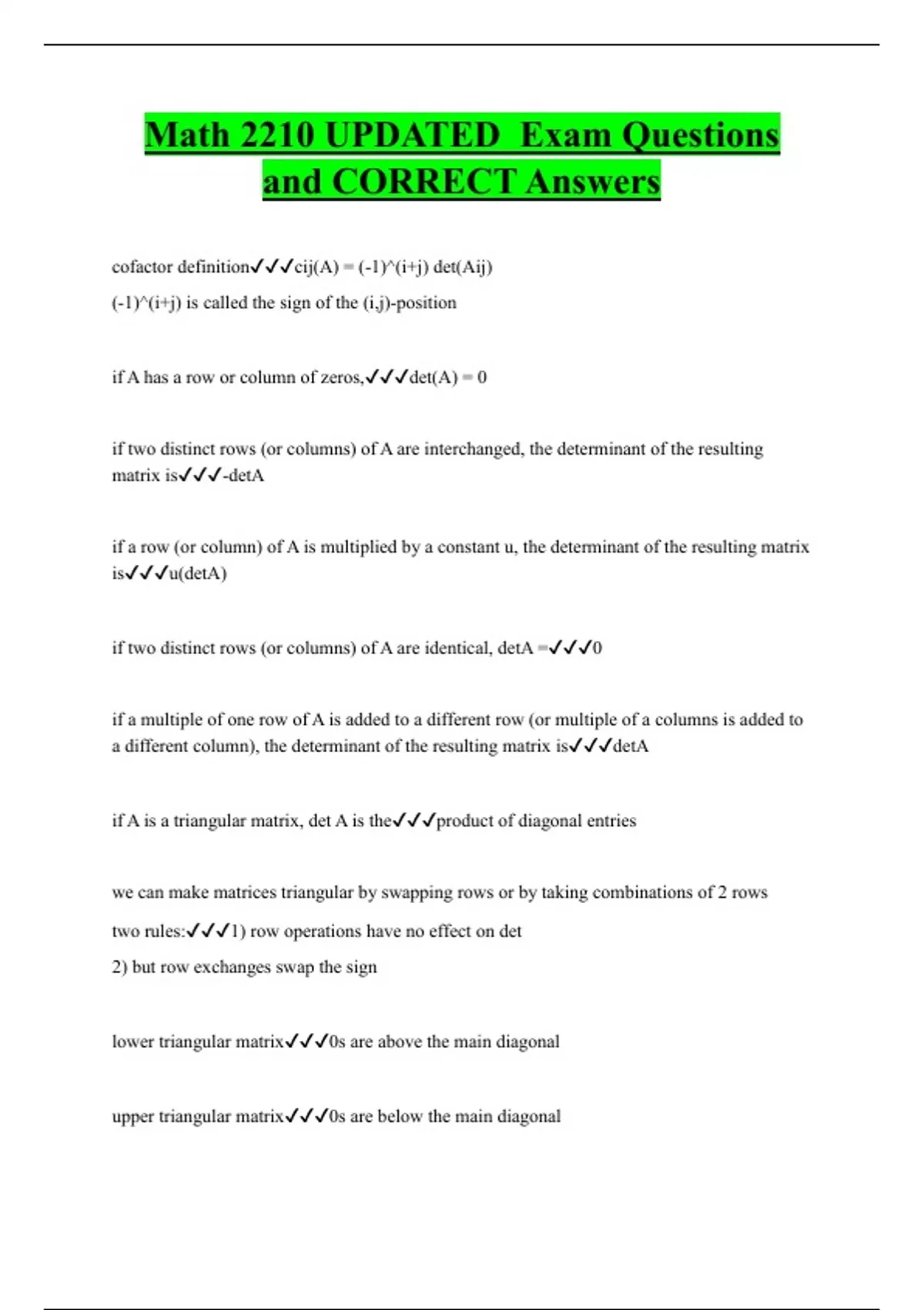 Math 2210 UPDATED Exam Questions and CORRECT Answers