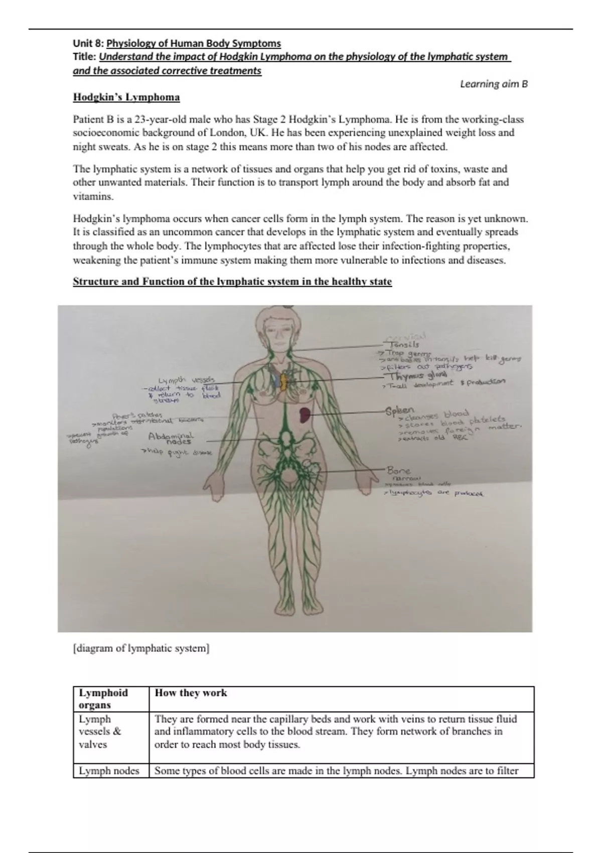Unit 8, Learning aim B - Understand the impact of Hodgkin Lymphoma on the physiology of the lymphatic system and the associated corrective treatments