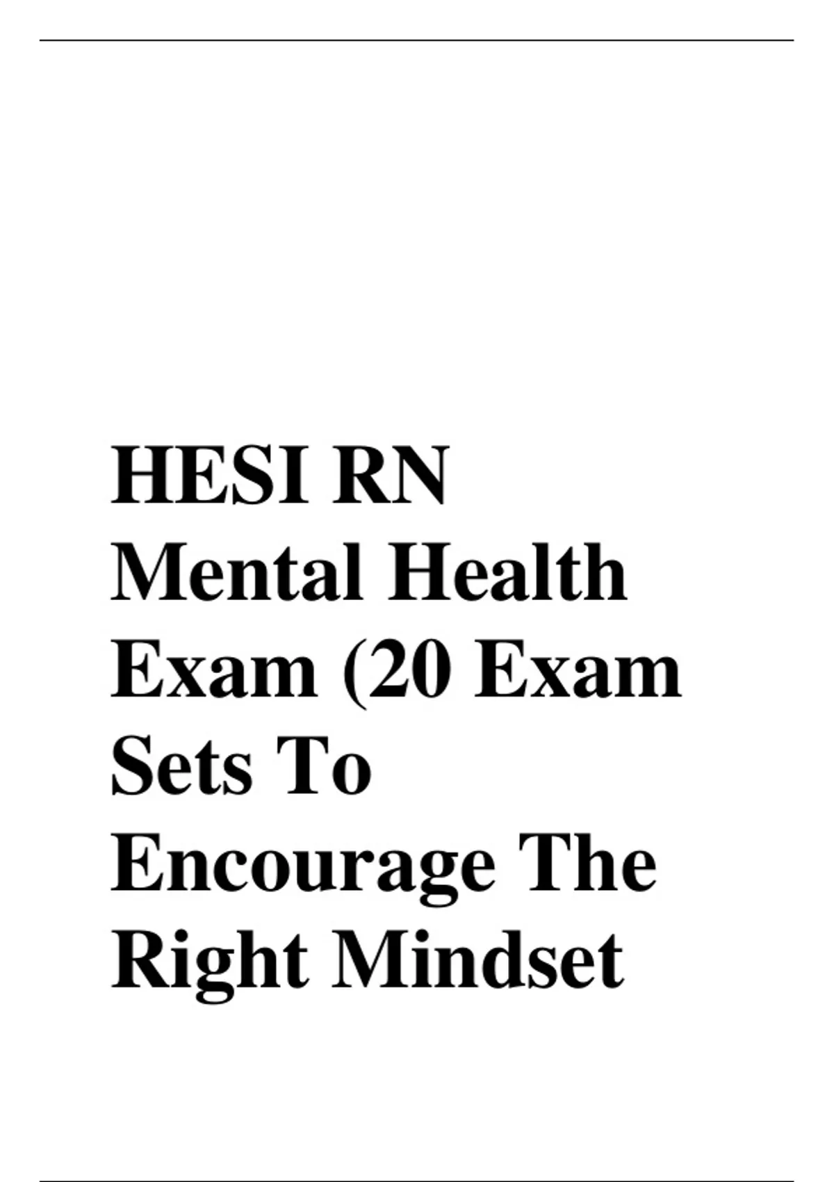 HESI RN Mental Health Exam (20 Exam Sets To Encourage The Right Mindset For Success In Any Student 1500+ Q &A, Newest-2022)