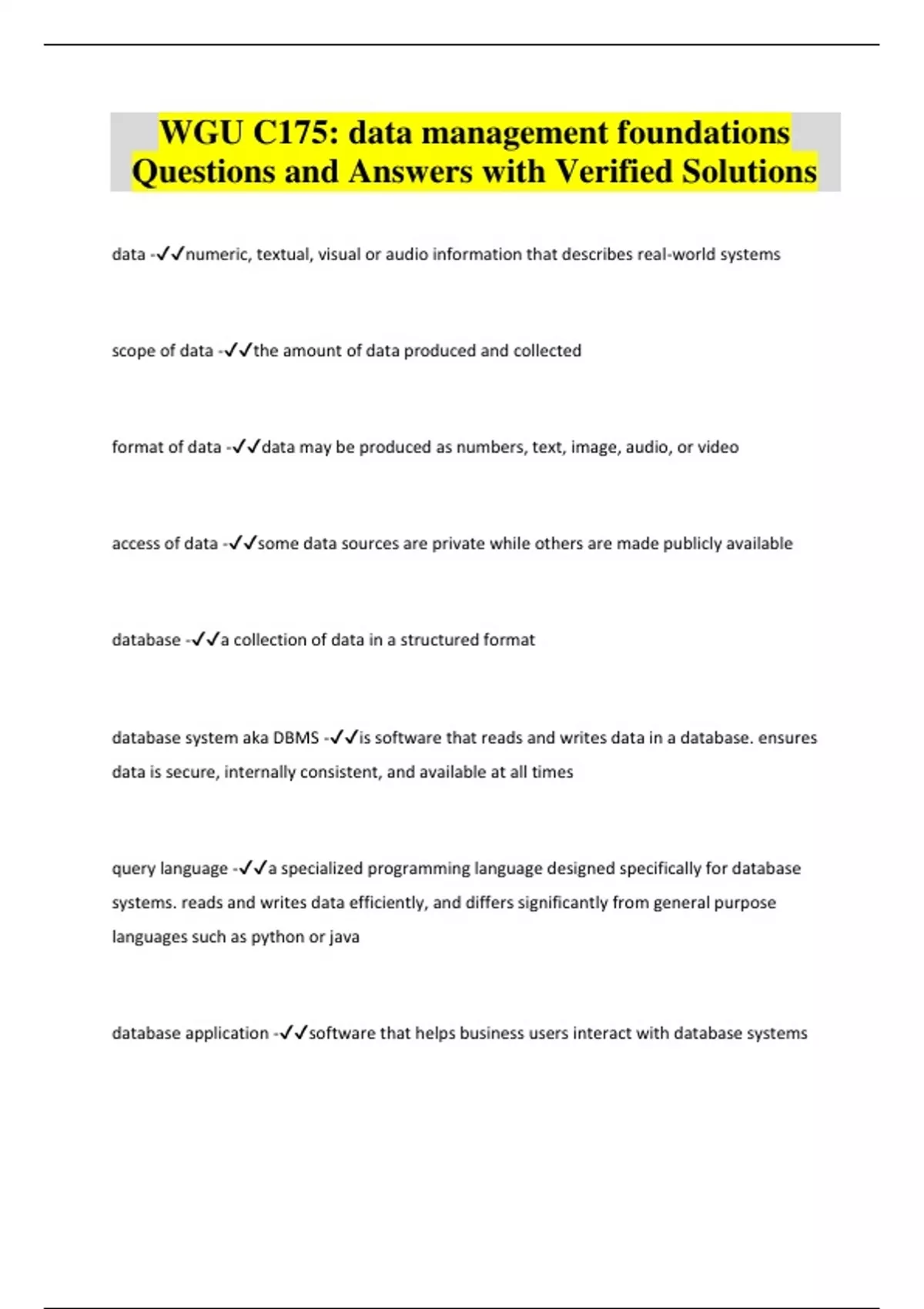 WGU C175: data management foundations Questions and Answers with Verified Solutions