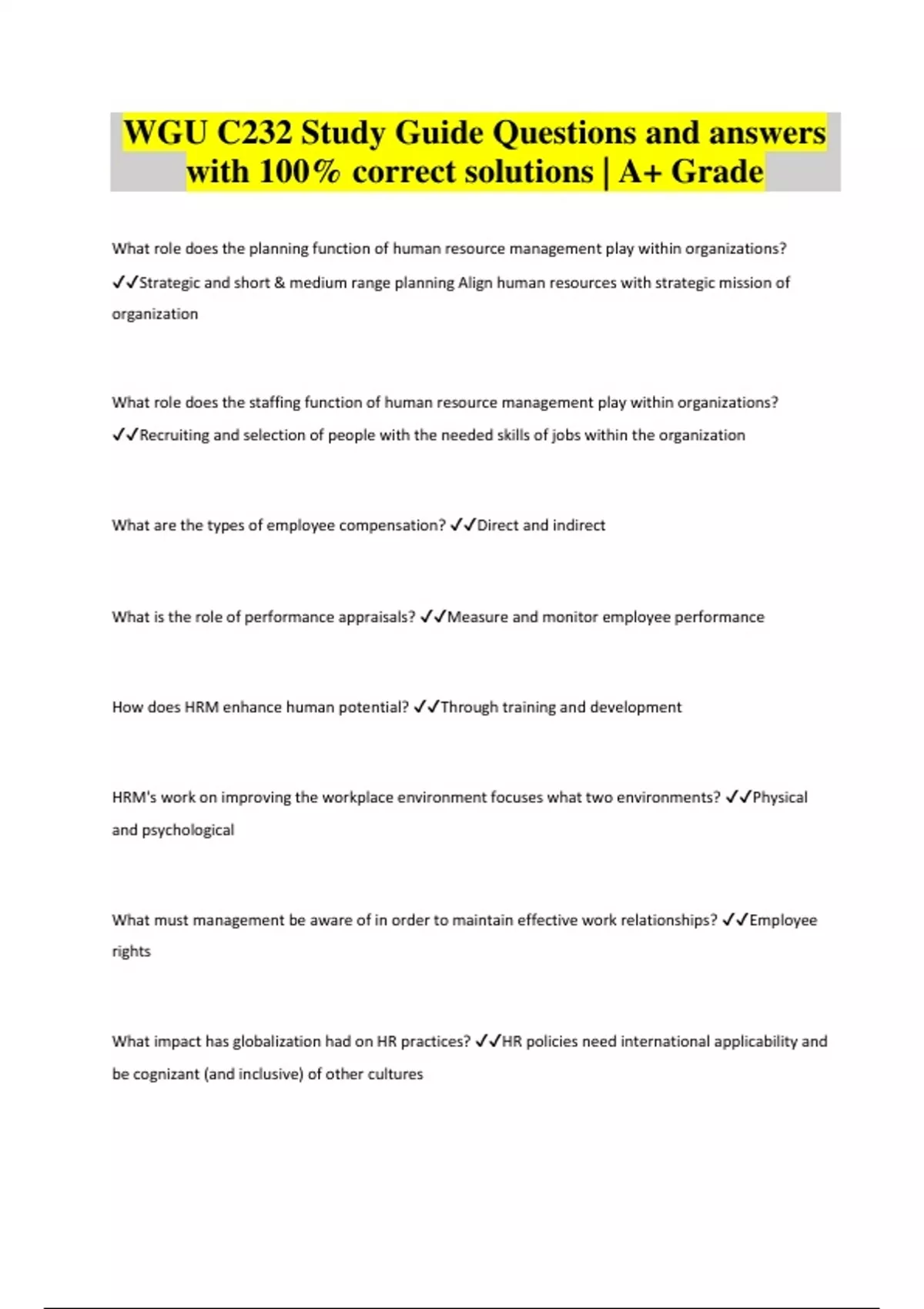 WGU C232 Study Guide Questions and answers with 100% correct solutions | A+ Grade