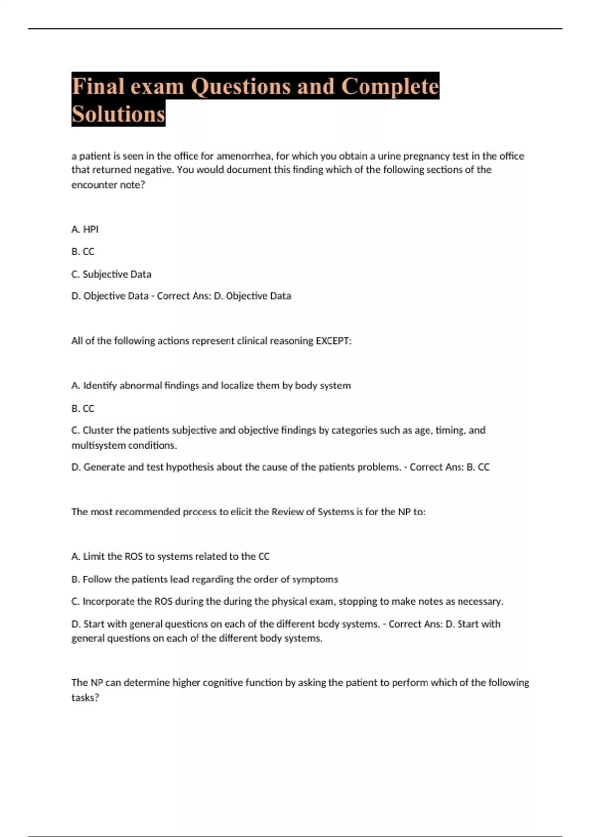 final exam questions and complete solutions