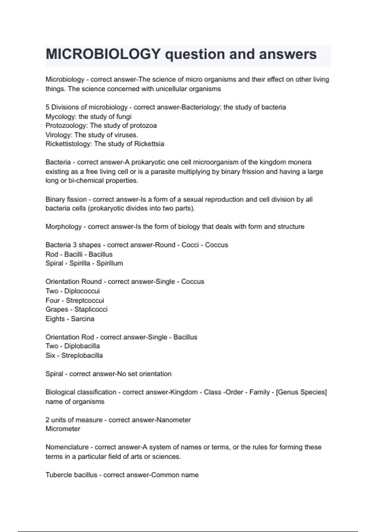 MICROBIOLOGY question and answers