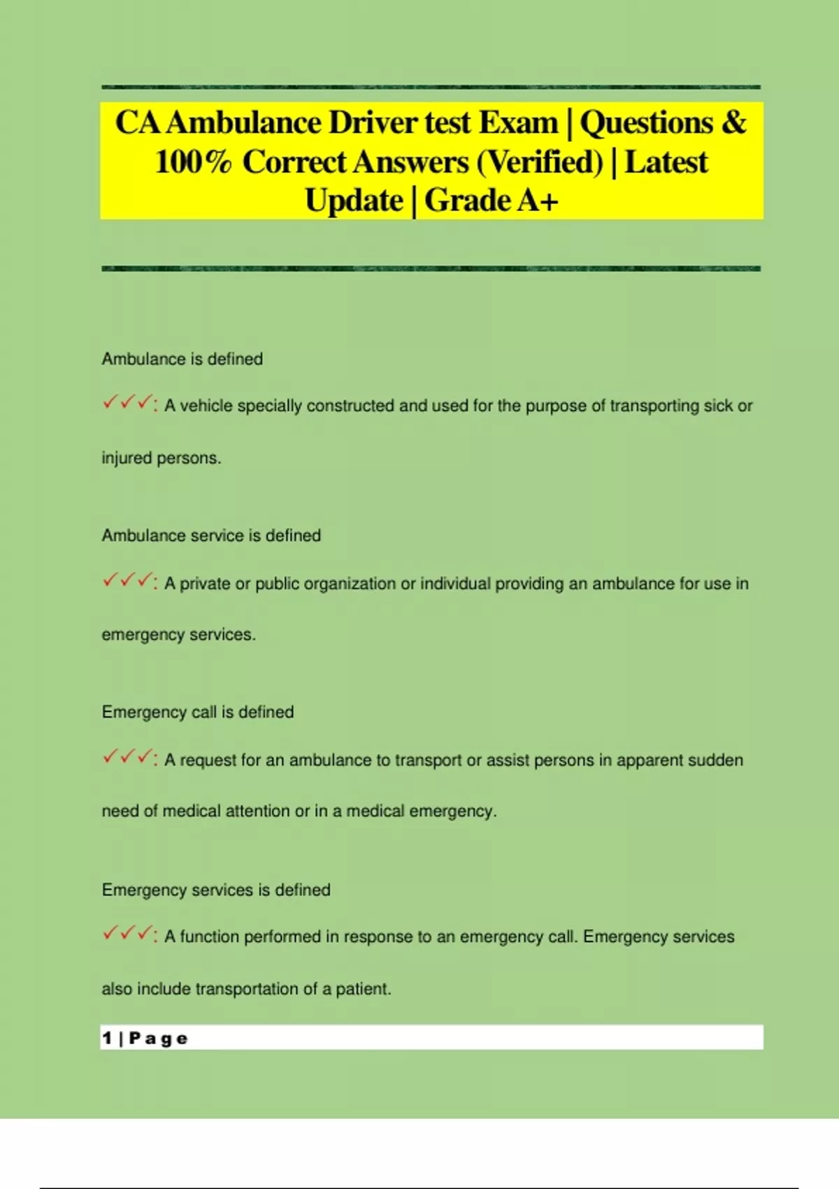 CA Ambulance Driver test Exam | Questions & 100% Correct Answers (Verified) | Latest Update | Grade A+