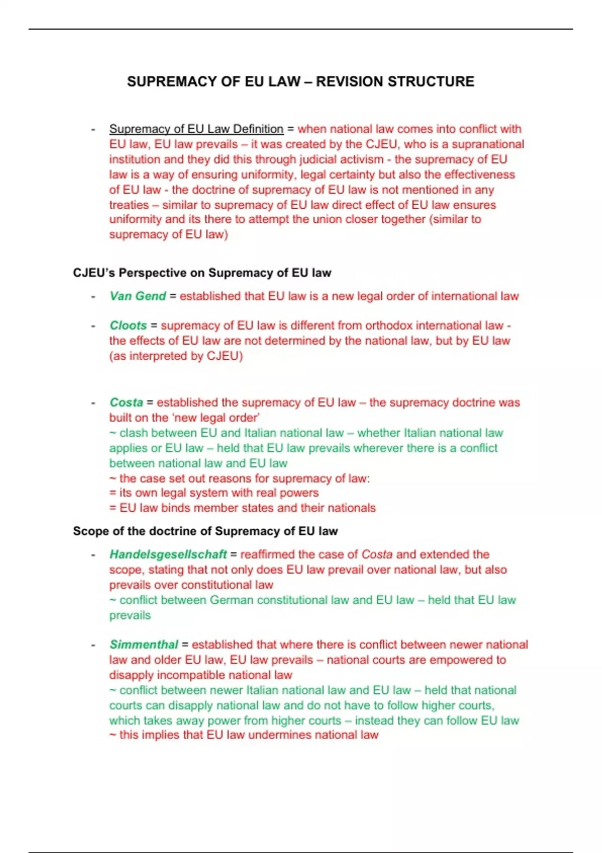 SUPREMACY OF EU LAW – REVISION STRUCTURE