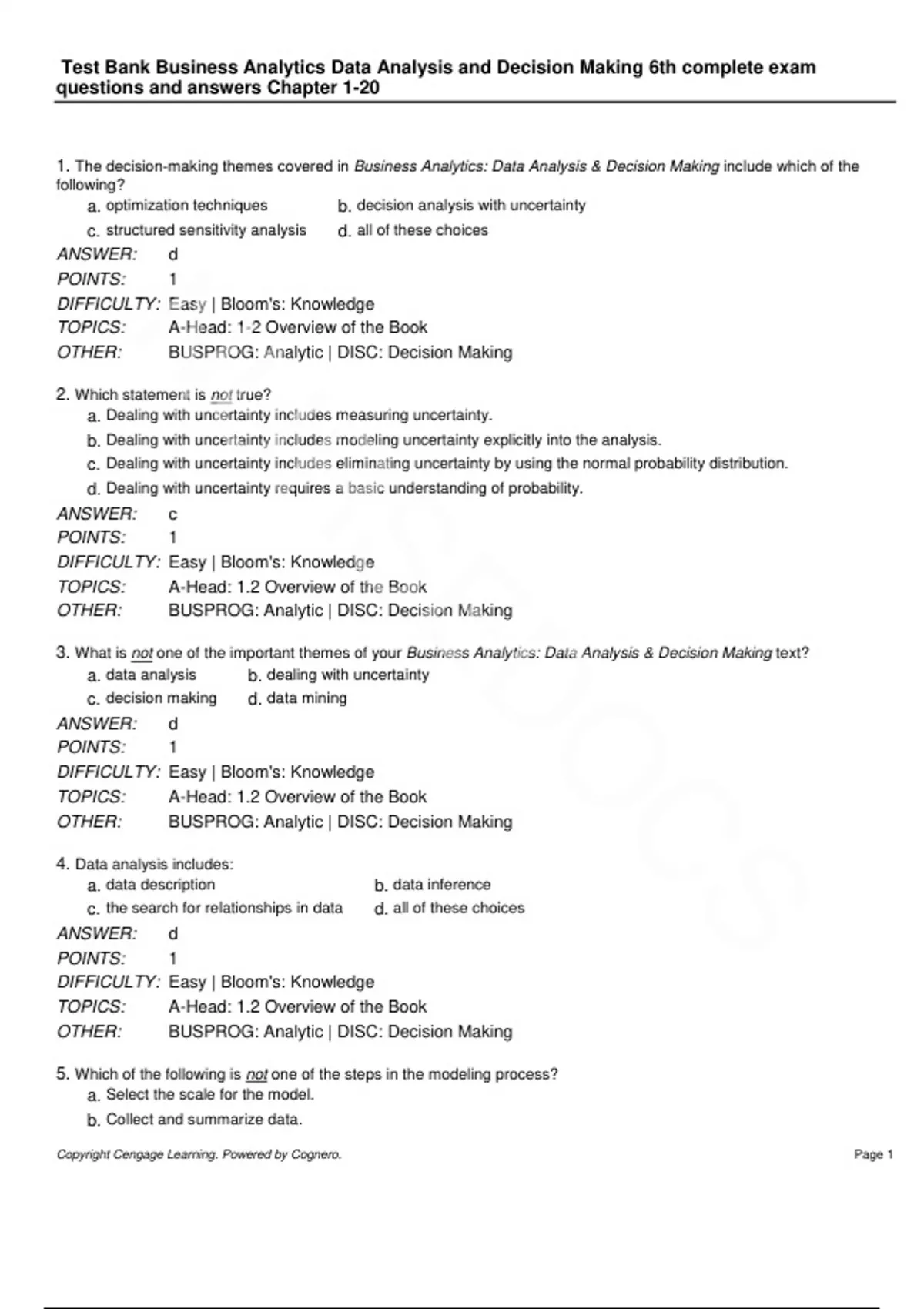 Test Bank Business Analytics Data Analysis and Decision Making 6th Edition by S. Christian Albright, Wayne L. Winston.||ISBN 978-1305947542||All Chapter 1-20||Complete Guide A+