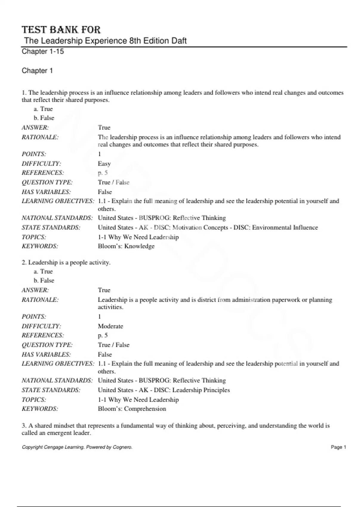 Test Bank for The Leadership Experience 8th Edition by Richard L. Daft||ISBN 978-0357716304||Al Chapters 1-15||Complete Guide A+
