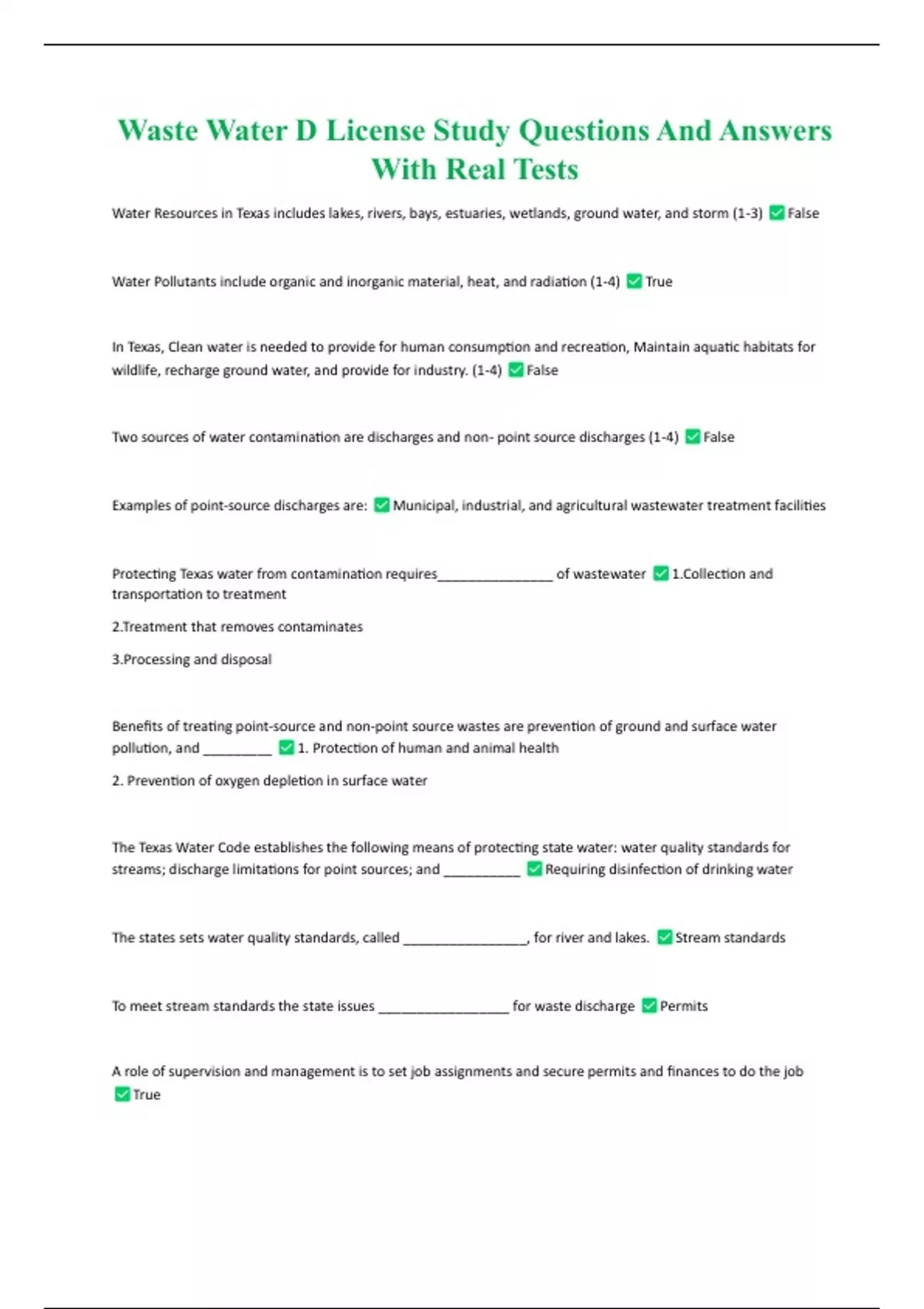 Waste Water D License Study Questions And Answers With Real Tests